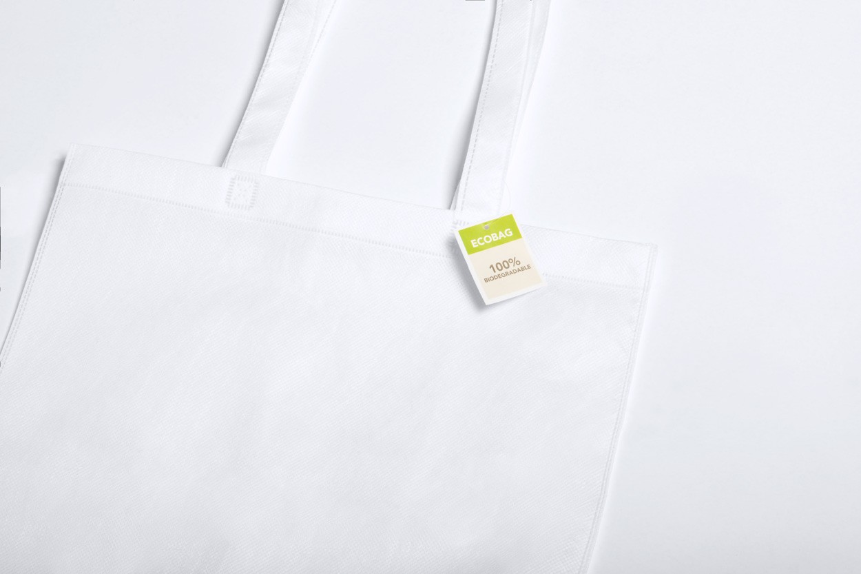 Geantă de cumpărături PLA cu mânere lungi. 100% biodegradabil PLA, 70 g / m².