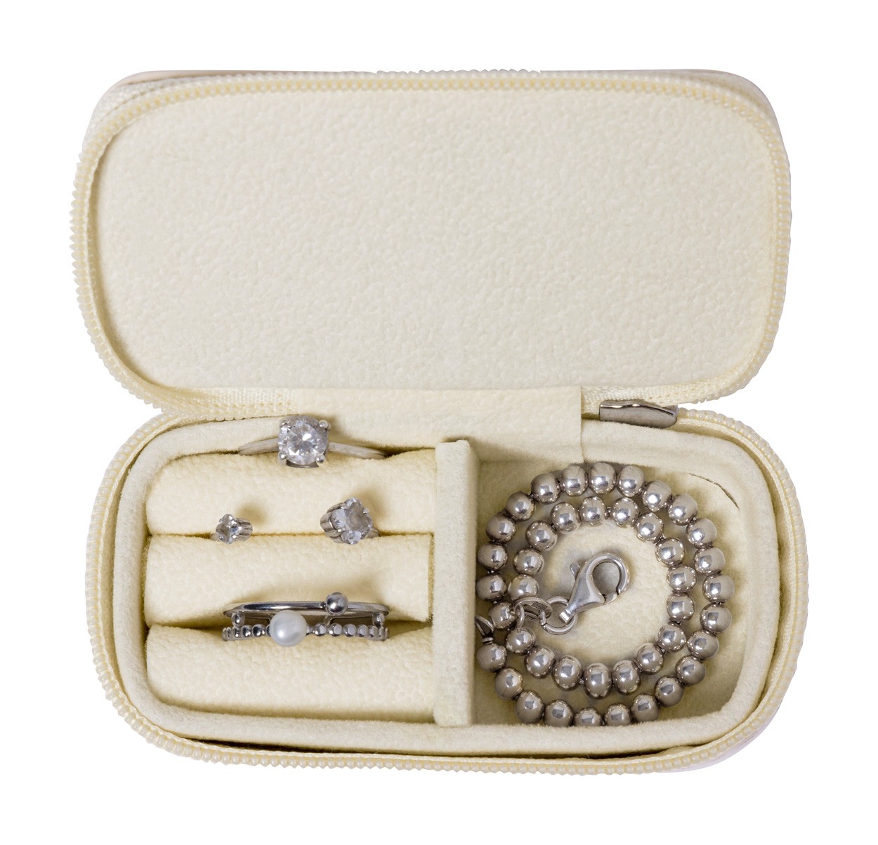 Cutie de bijuterii, cu fermoar, din piele PU.