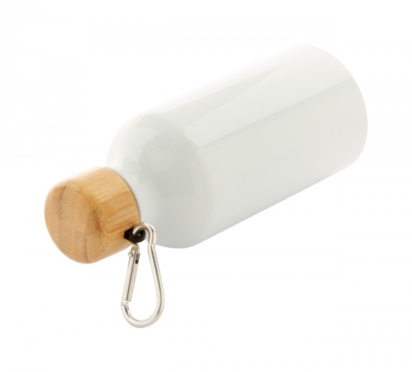 Sticlă din aluminiu cu capac din bambus și carabină, 400 ml.