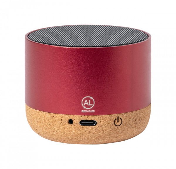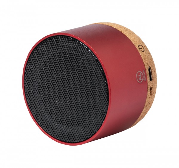 Difuzor bluetooth din aluminiu reciclat, cu bază din plută naturală și baterie reîncărcabilă încorporată (300 mAh). Inclusiv cablu de încărcare USB.