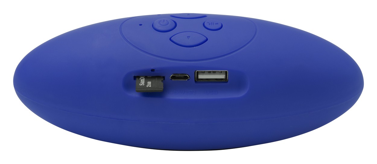 Difuzor cu bluetooth, carcasă din plastic cauciucat. Cu handsfree și baterie reîncărcabilă încorporată. Cablu încărcător USB inclus.