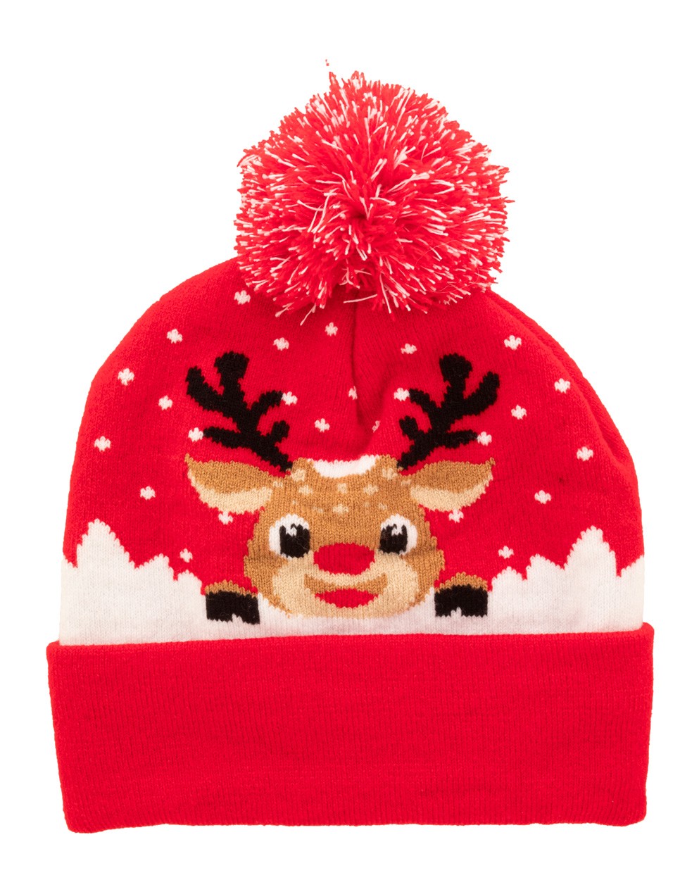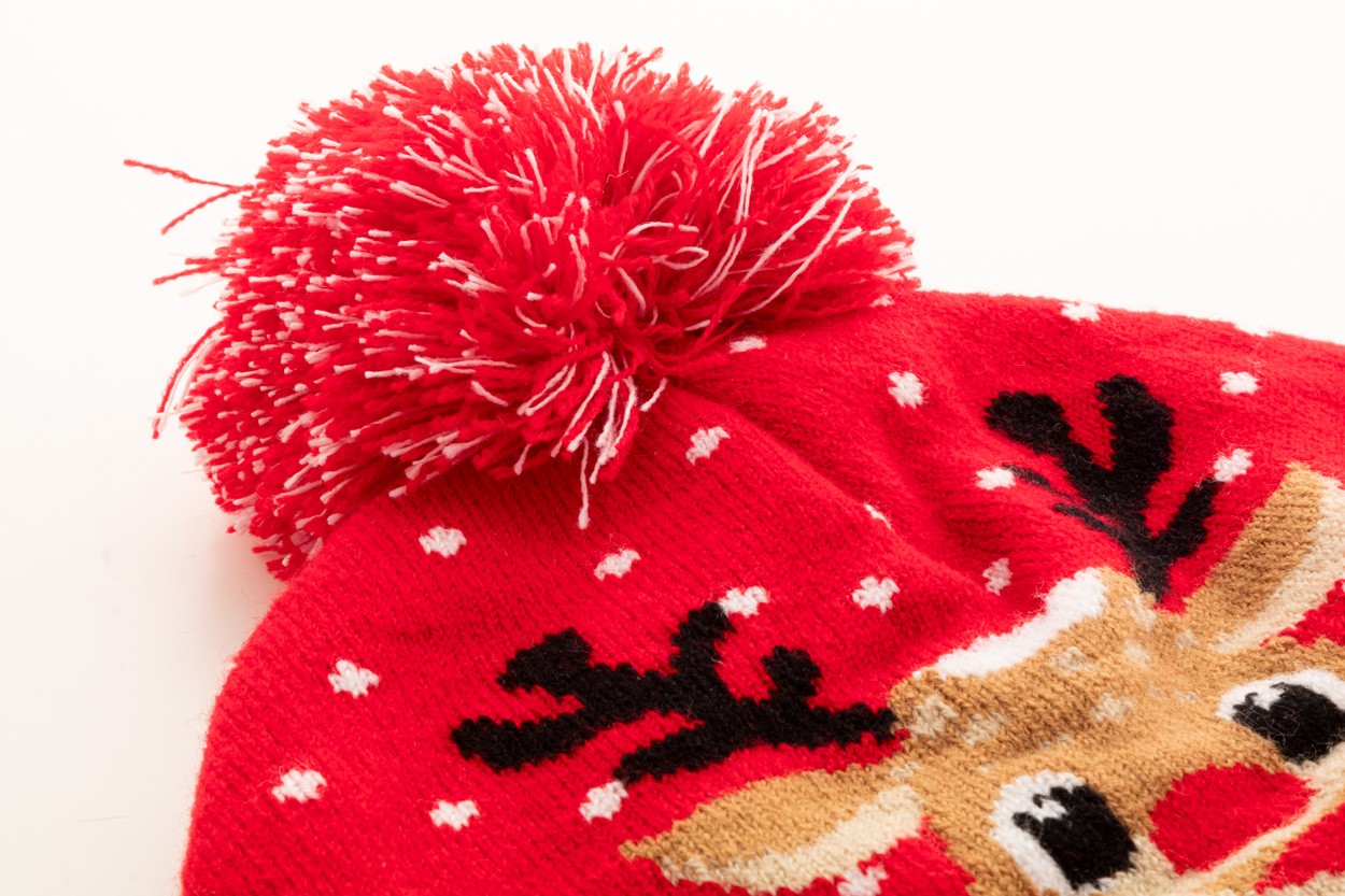 Căciulă de iarnă, de Crăciun, tricotată, din acril cu pompon.
