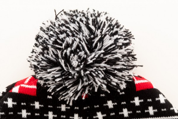 Căciulă de iarnă, de Crăciun, tricotată, din acril cu pompon.