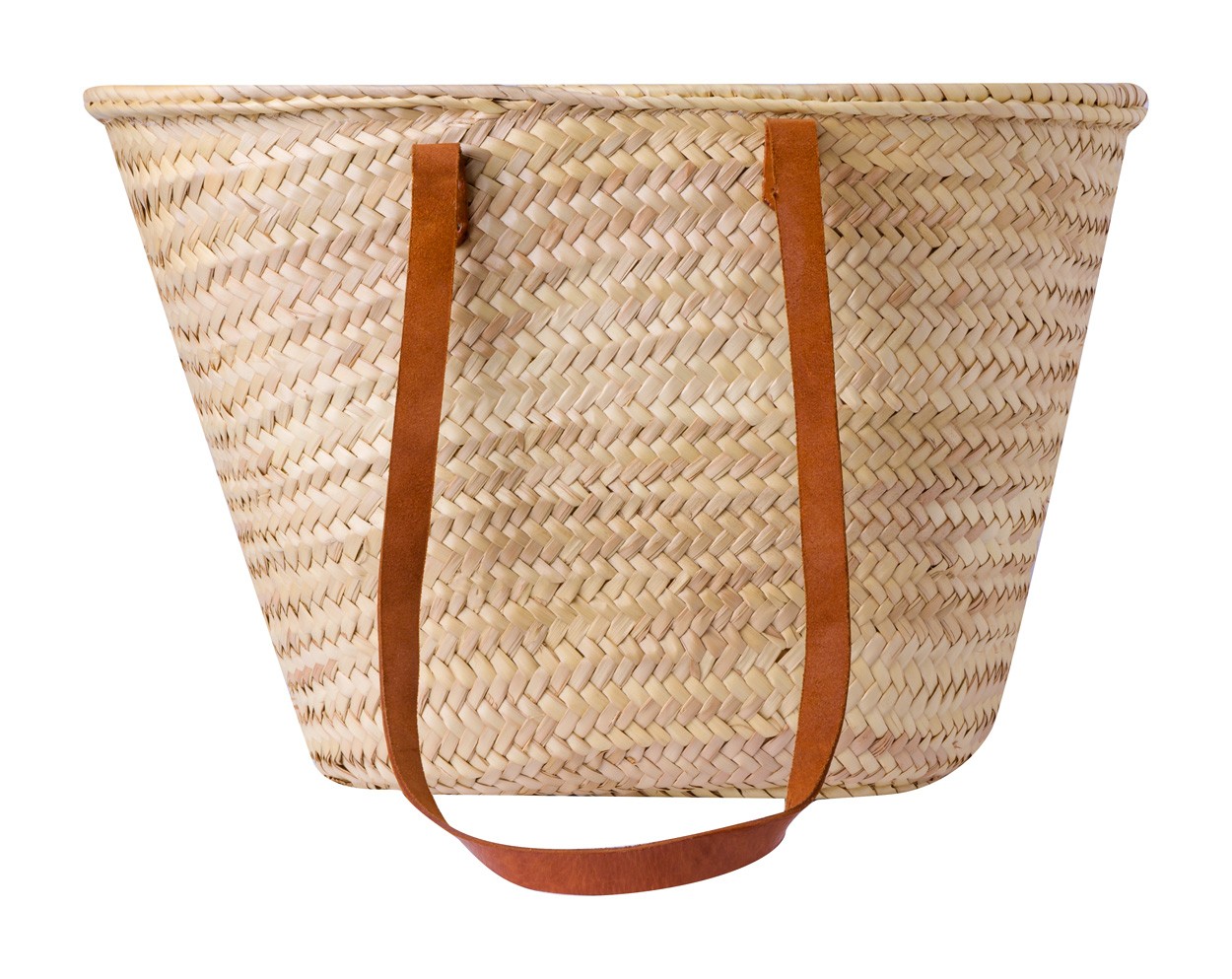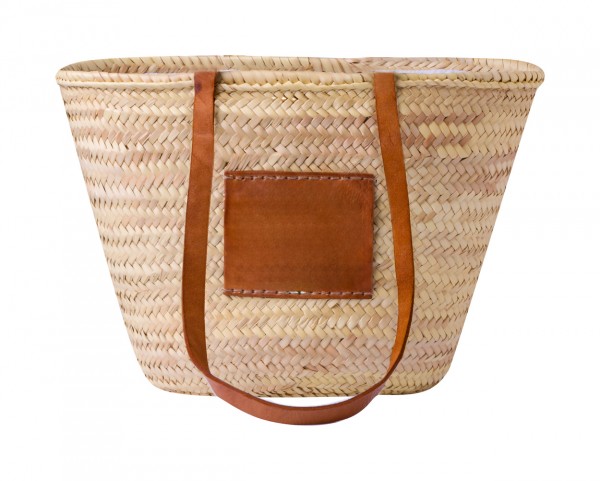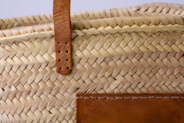 Geantă de plajă din paie, cu inserție de piele PU și mânere.