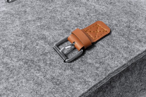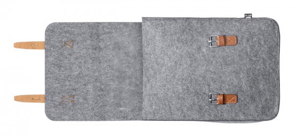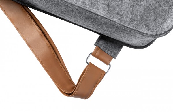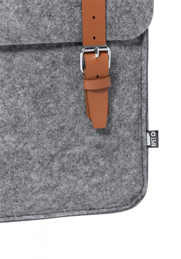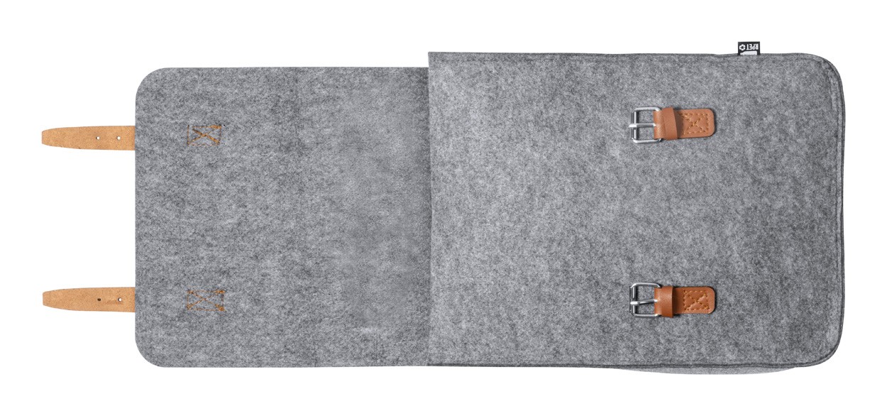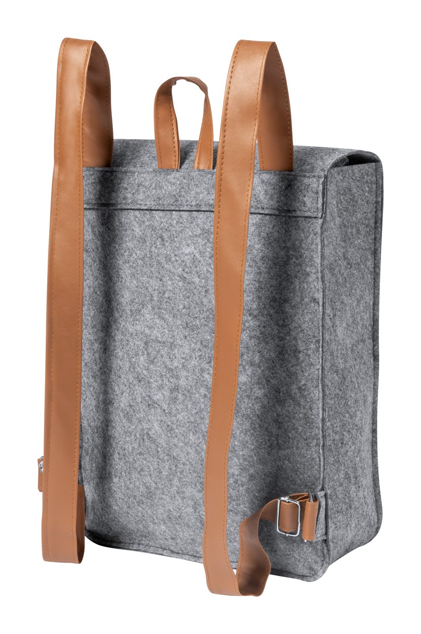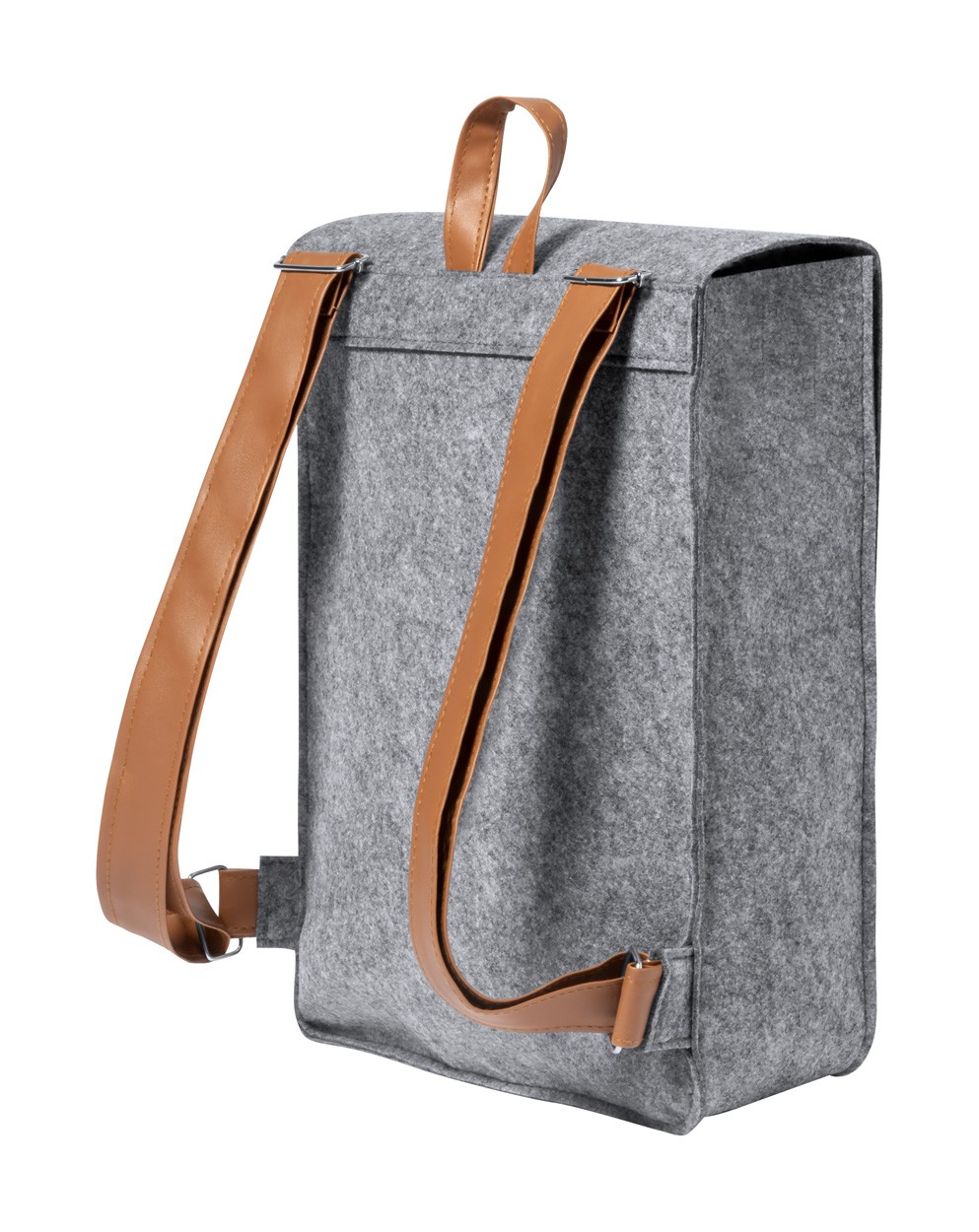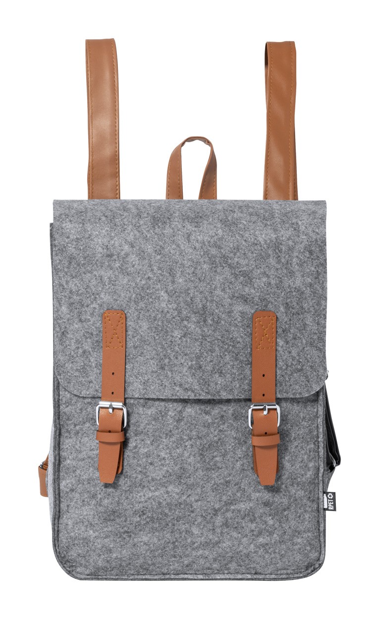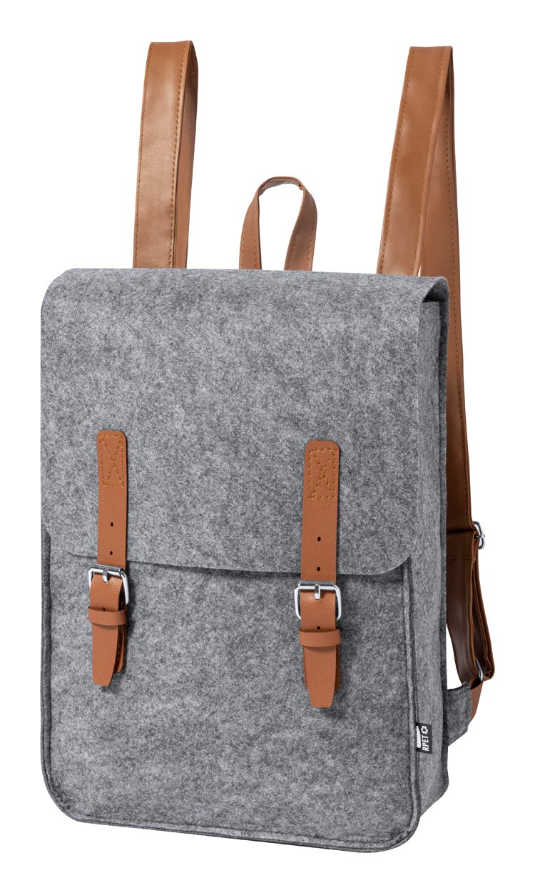 Rucsac din fetru RPET, cu accesorii din piele PU și închidere cu cataramă. Cu etichetă distinctivă RPET.