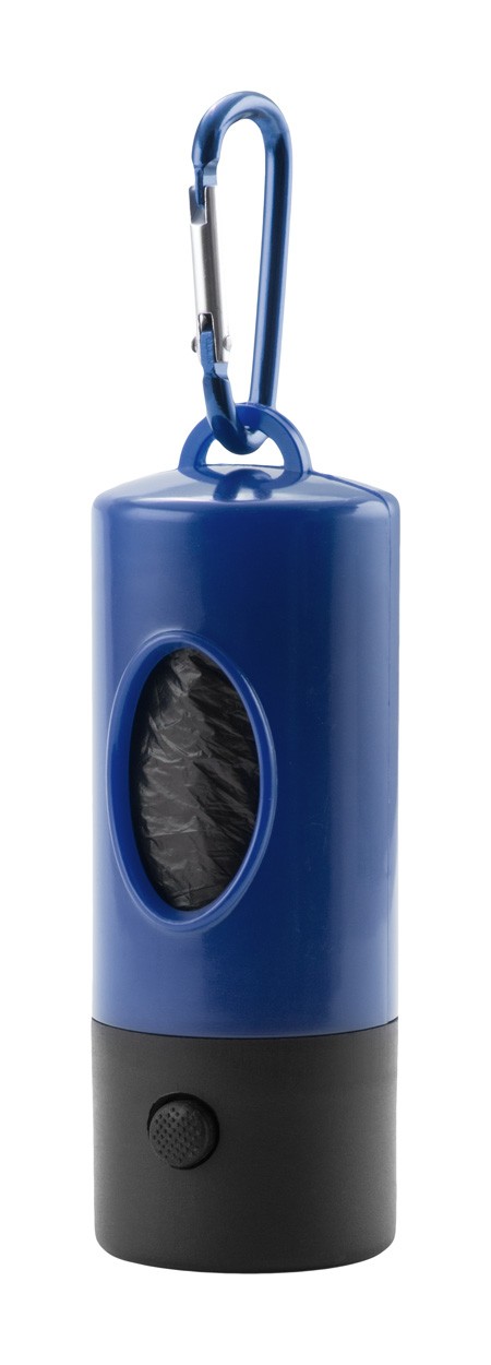 Suport din plastic în formă de os cu 15 saci de gunoi, cu 1 LED și carabină din aluminiu. Se livrează cu baterii.