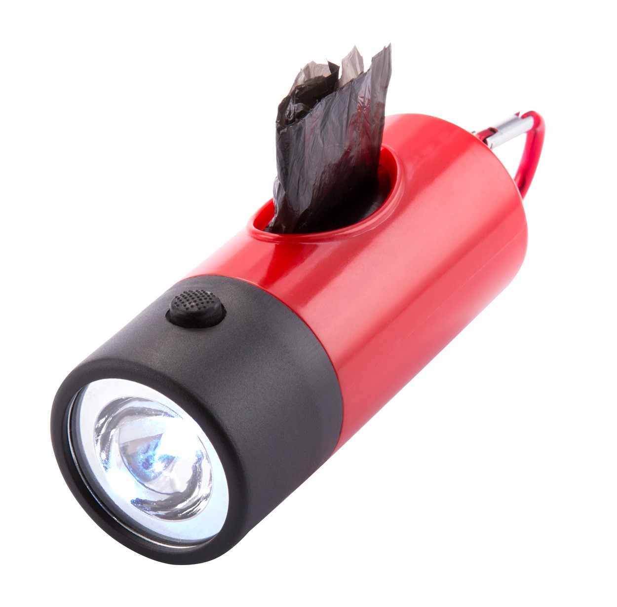 Suport din plastic în formă de os cu 15 saci de gunoi, cu 1 LED și carabină din aluminiu. Se livrează cu baterii.