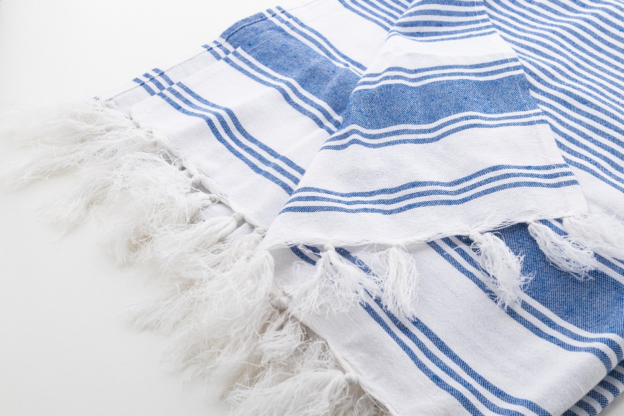 Prosop de plajă pareo, cu dungi în două nuanțe, din 70% bumbac și 30% poliester. 210 g/m².