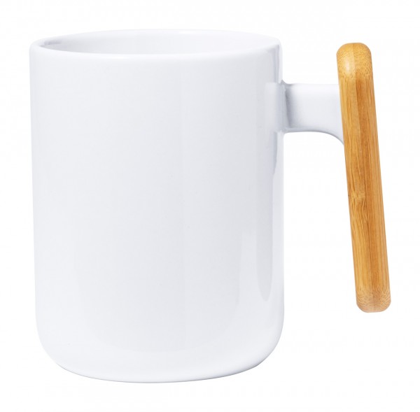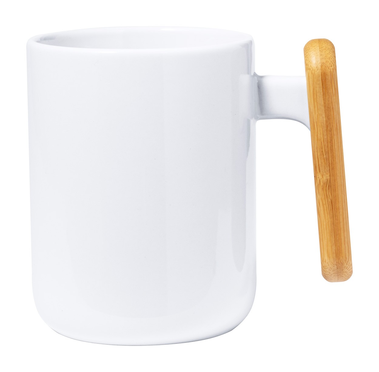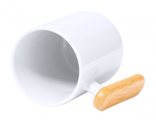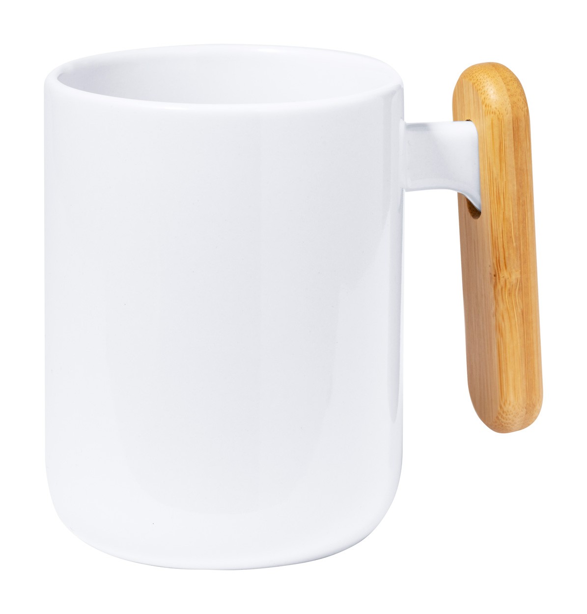Cană din ceramică, cu mâner din bambus, 480 ml. În cutie de hârtie kraft.