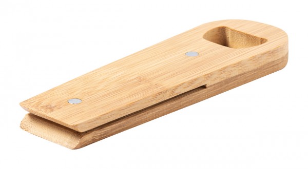 Clip de etanșare a pungilor, magnetic, din bambus, cu deschizător de sticle.