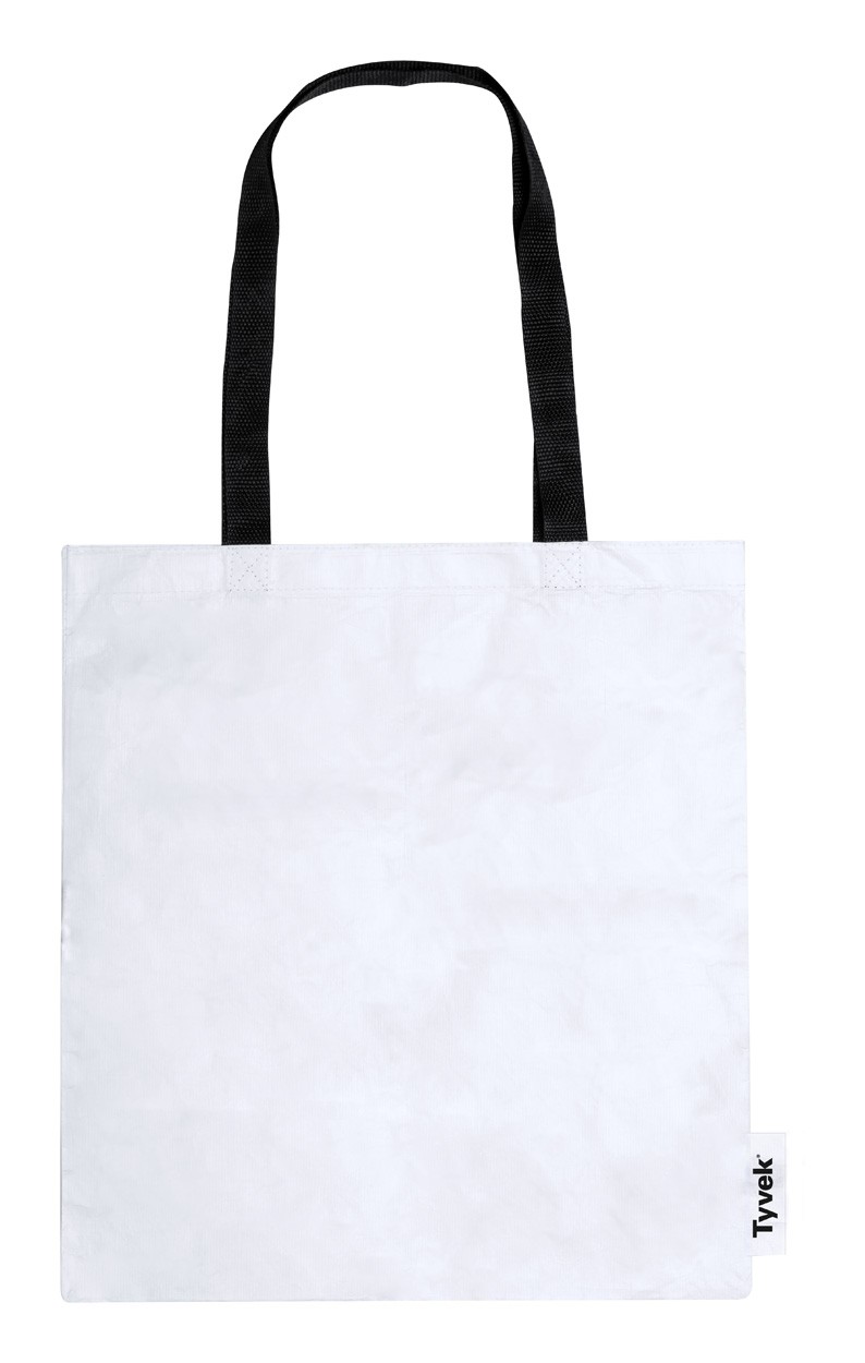 Geantă de cumpărături Tyvek® cu mânere lungi negre. Material Tyvek® 100% reciclabil. Capacitate: 7 kg.