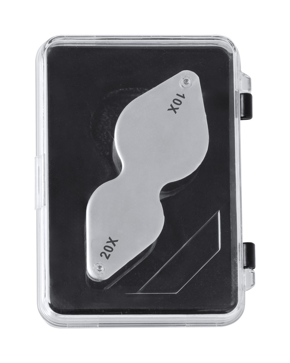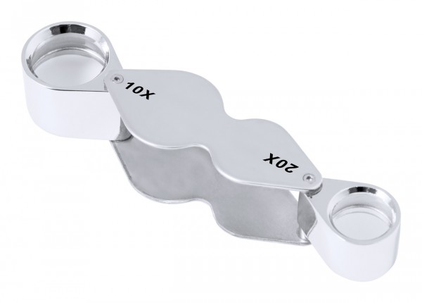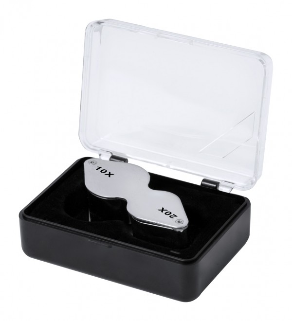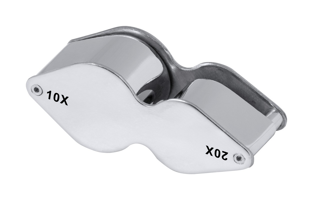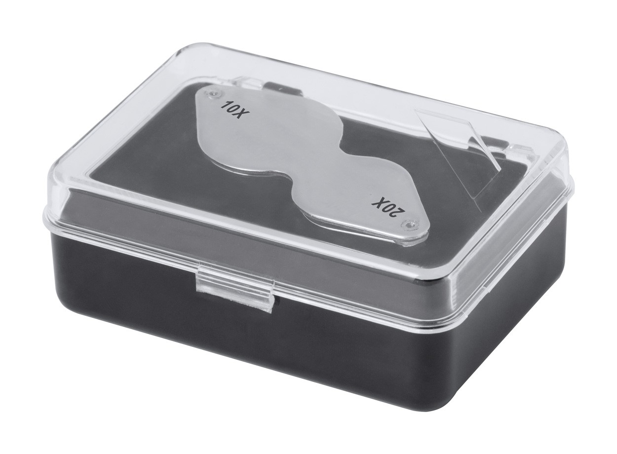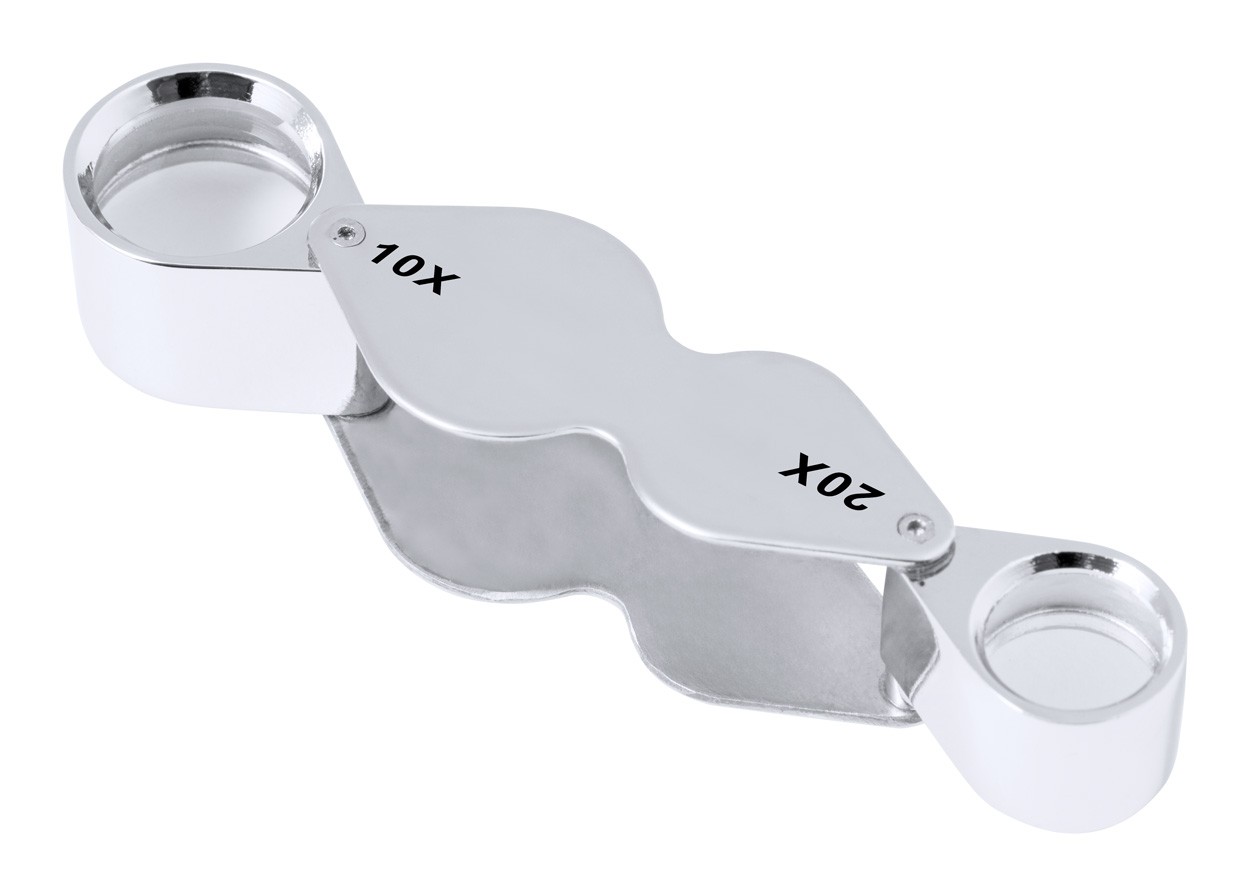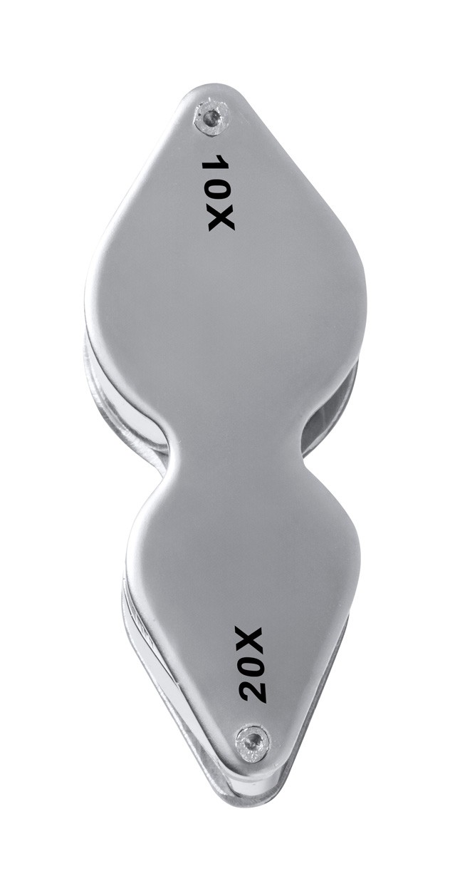 Foldable magnifier in metal.