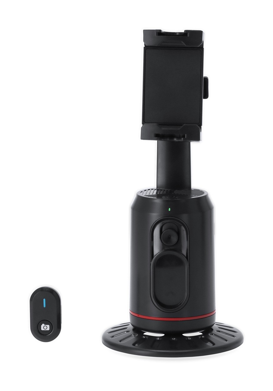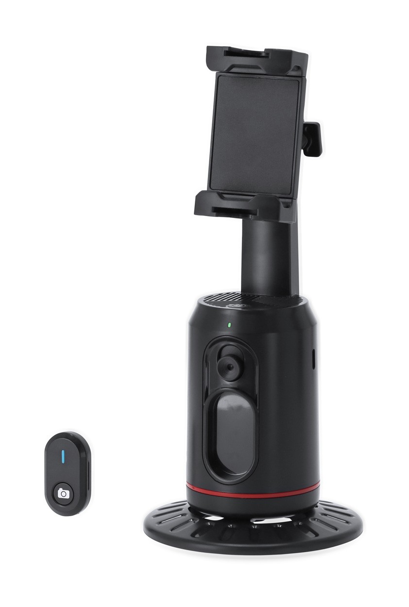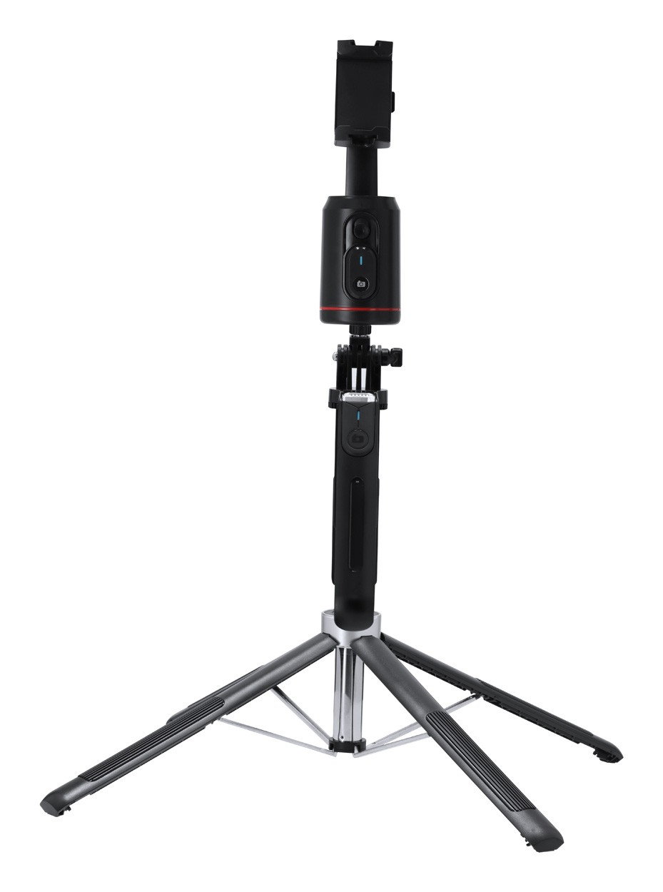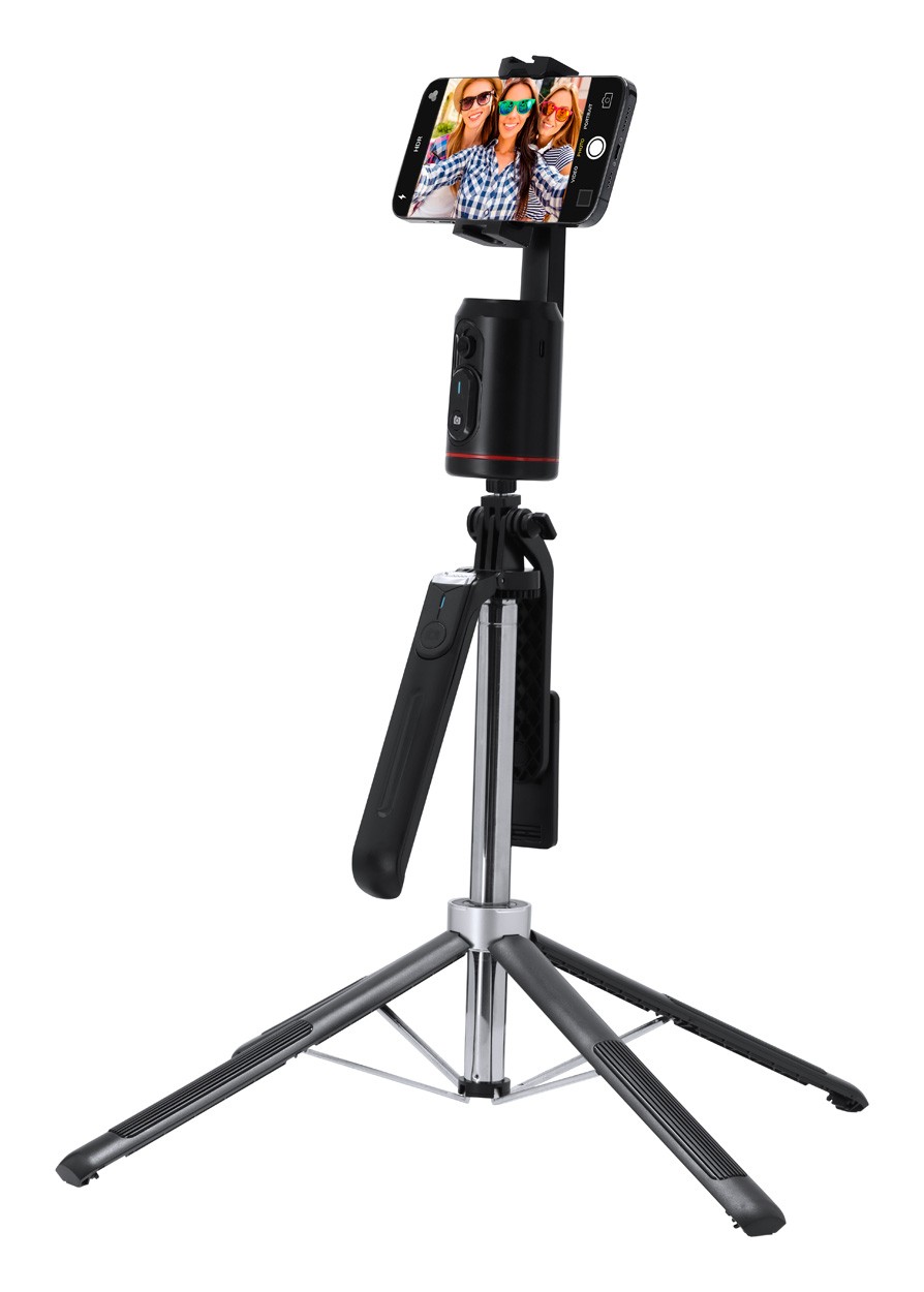 Trepied pliabil și extensibil, cu selfie stick din plastic ABS cu suport pentru telefon mobil, cu funcție de urmărirea feței AI. Cu control prin gesturi și declanșator cu telecomandă bluetooth. Cu baterie încorporată de 1200 mAh.