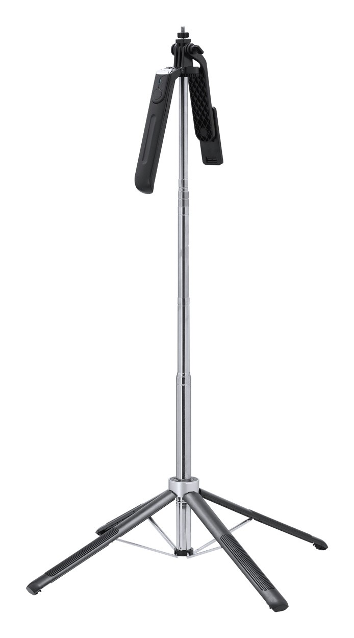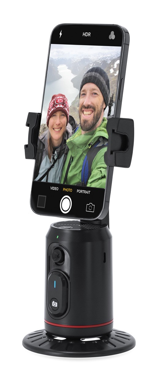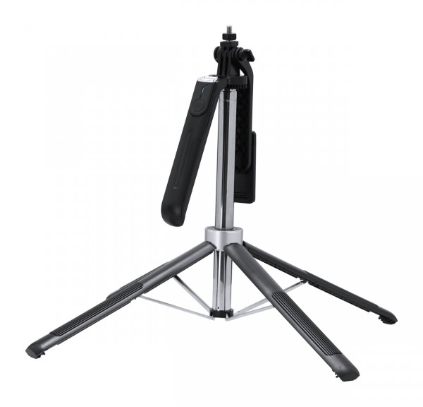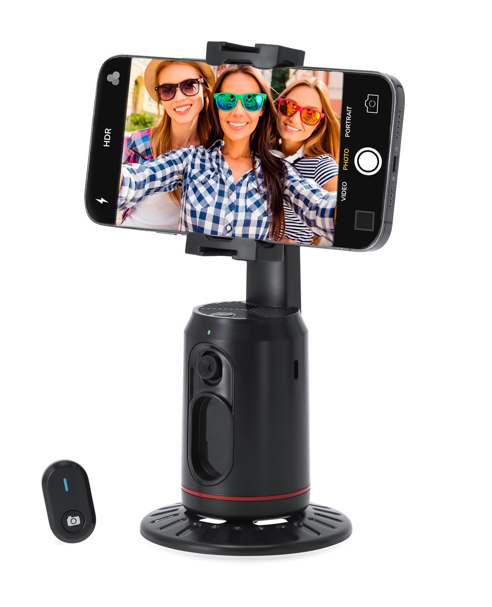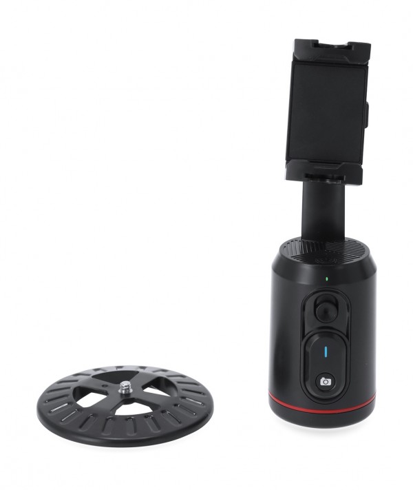 Trepied pliabil și extensibil, cu selfie stick din plastic ABS cu suport pentru telefon mobil, cu funcție de urmărirea feței AI. Cu control prin gesturi și declanșator cu telecomandă bluetooth. Cu baterie încorporată de 1200 mAh.