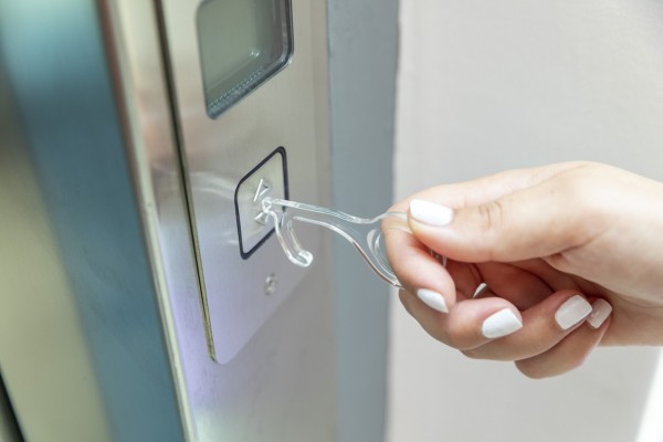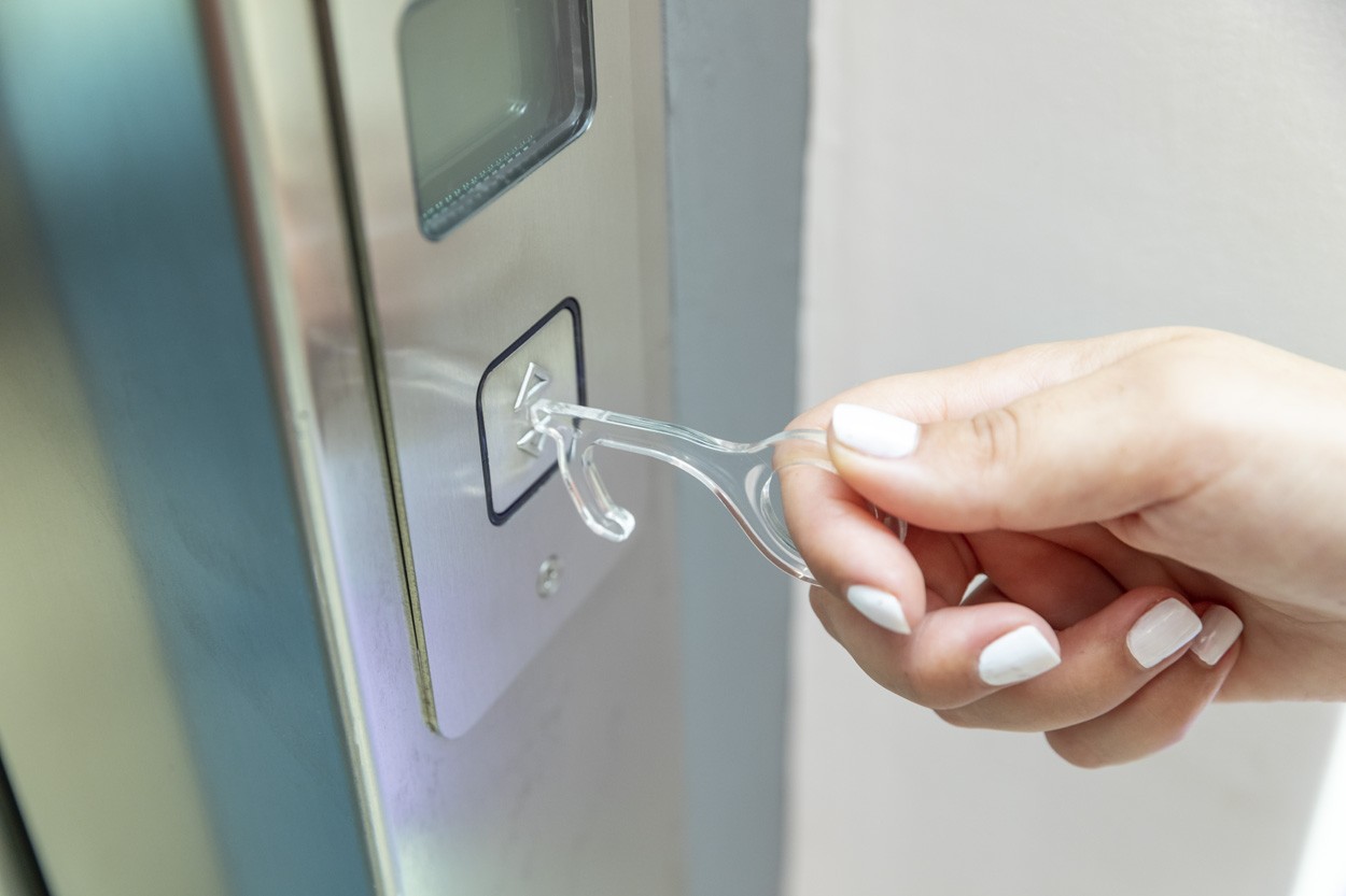 Cheie de igiena din otel inoxidabil cu inel metalic pentru chei. Ideala pentru apasarea butoanelor si deschiderea usilor fara contact direct.