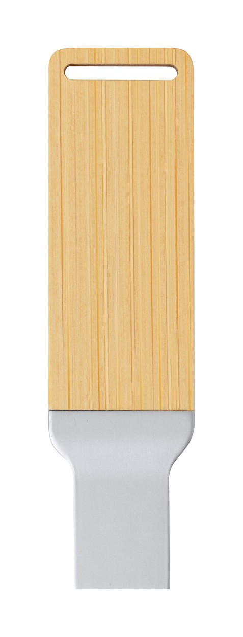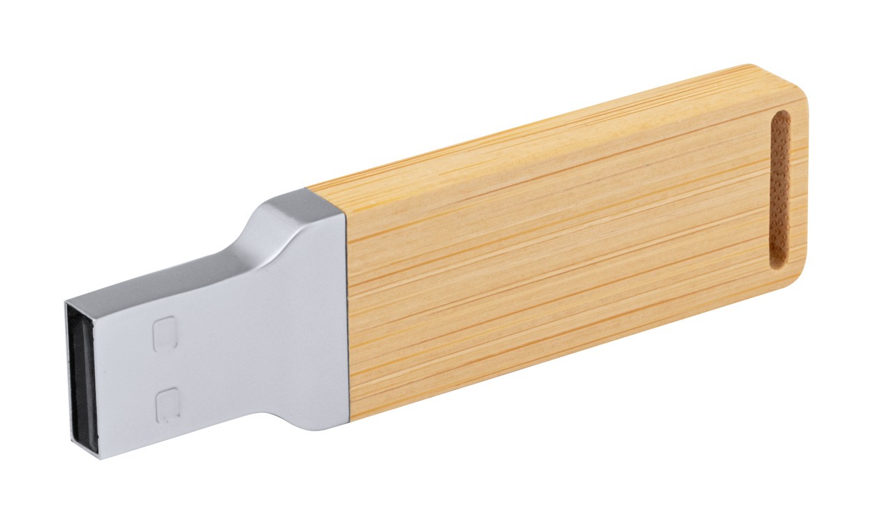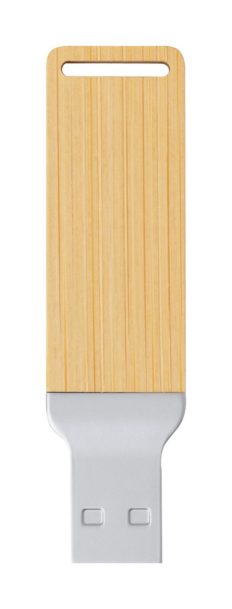 USB flash drive in bamboo and aluminium with 16 GB memory.