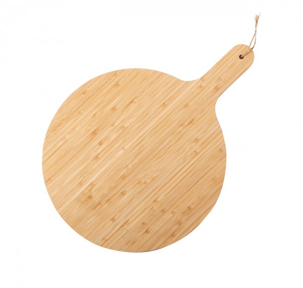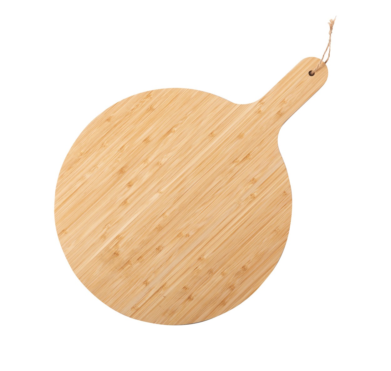 Placă de tăiat pizza, din bambus, cu șnur pentru agățare .