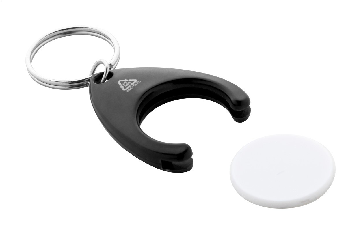 Breloc din plastic ABS reciclat, cu monedă din cărucior de cumpărături și inel metalic. Dimensiunea monedei: ø24×2 mm.