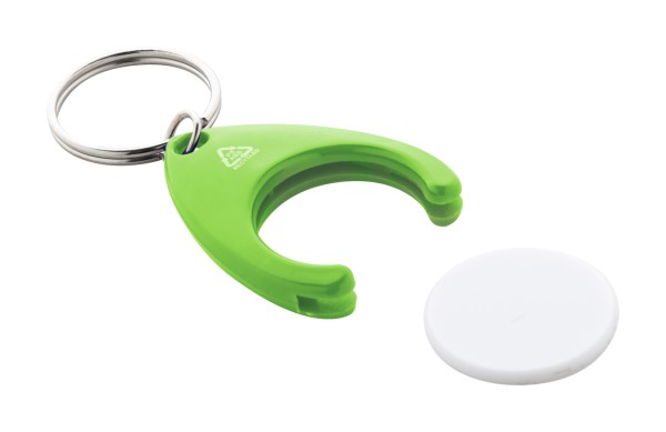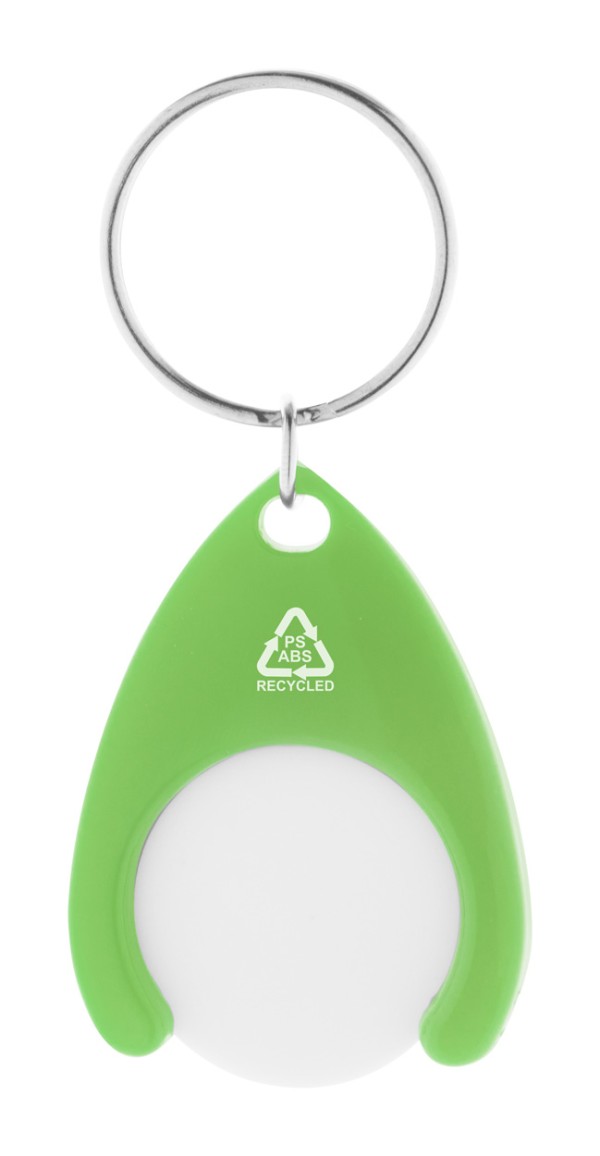Breloc din plastic ABS reciclat, cu monedă din cărucior de cumpărături și inel metalic. Dimensiunea monedei: ø24×2 mm.
