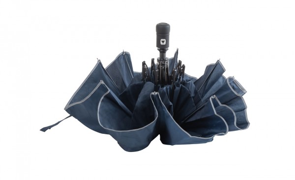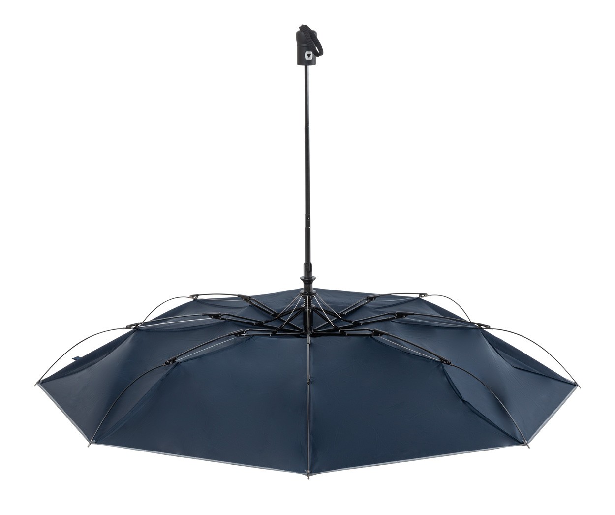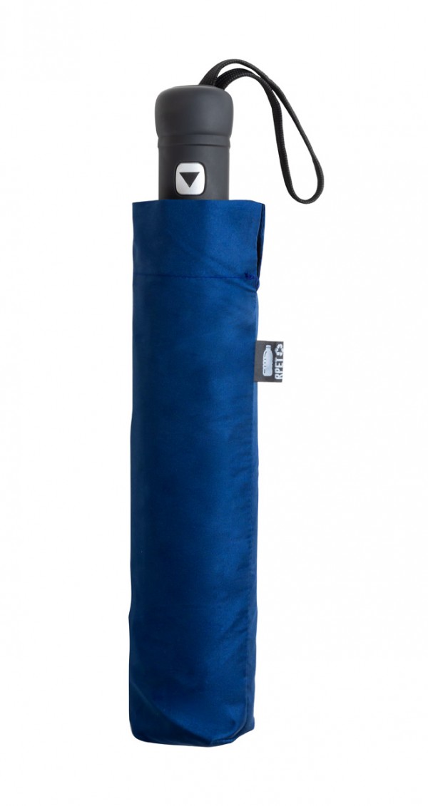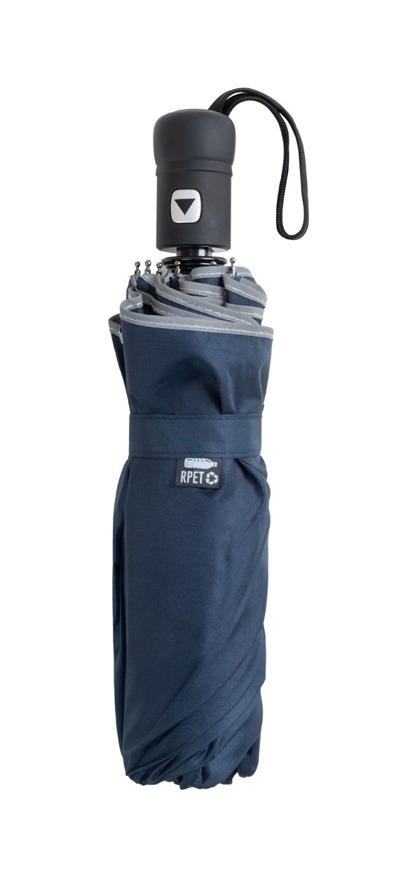 Umbrelă pliabilă automată, rezistentă la vânt, cu 8 panouri, în husă RPET de culoare asortată. Cu ornamente reflectorizante, cadru metalic și nervuri din fibră de sticlă. Pongee 190T RPET. Cu etichetă distinctivă RPET.
