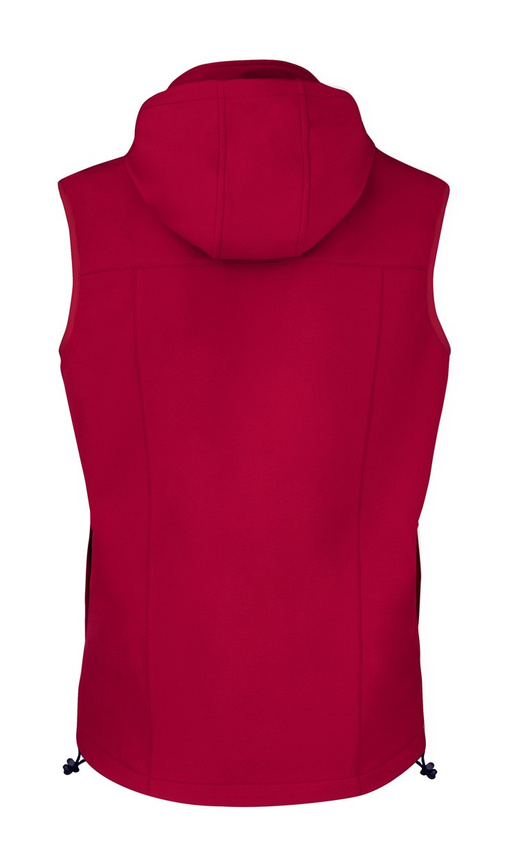 Vestă softshell, rezistentă la vânt și impermeabilă, cu fermoar, cu 2 buzunare laterale, 1 buzunar frontal, guler ridicat și glugă detașabilă. 100% poliester, 300 g/m².