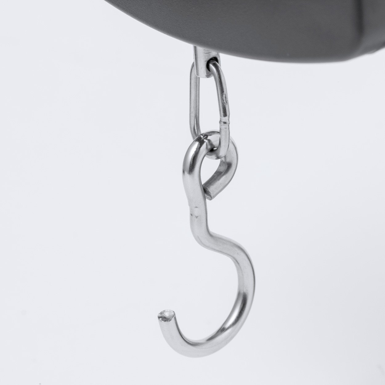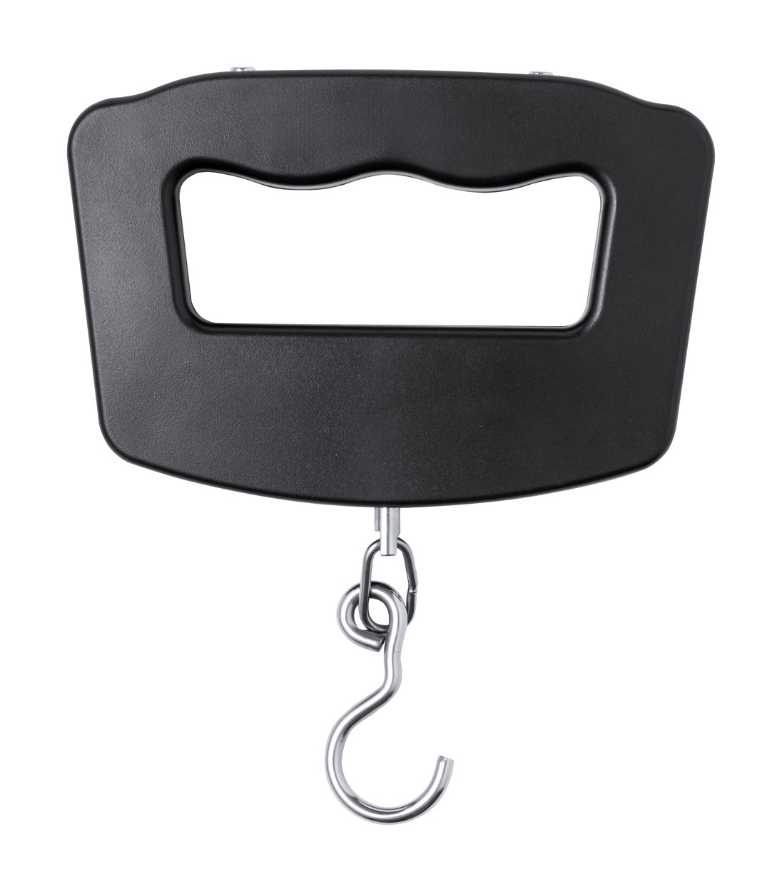 Portable, digital weighing scale with ergonomic handle, LCD screen and metal hook. Operates with 2 AAA batteries, without batteries.