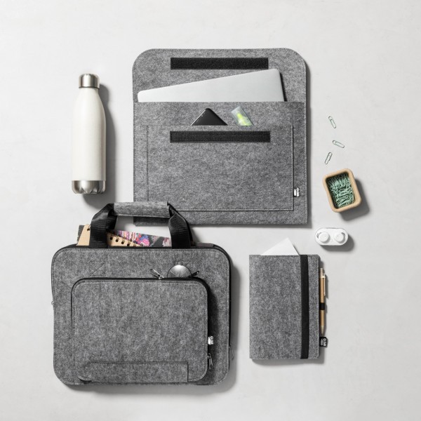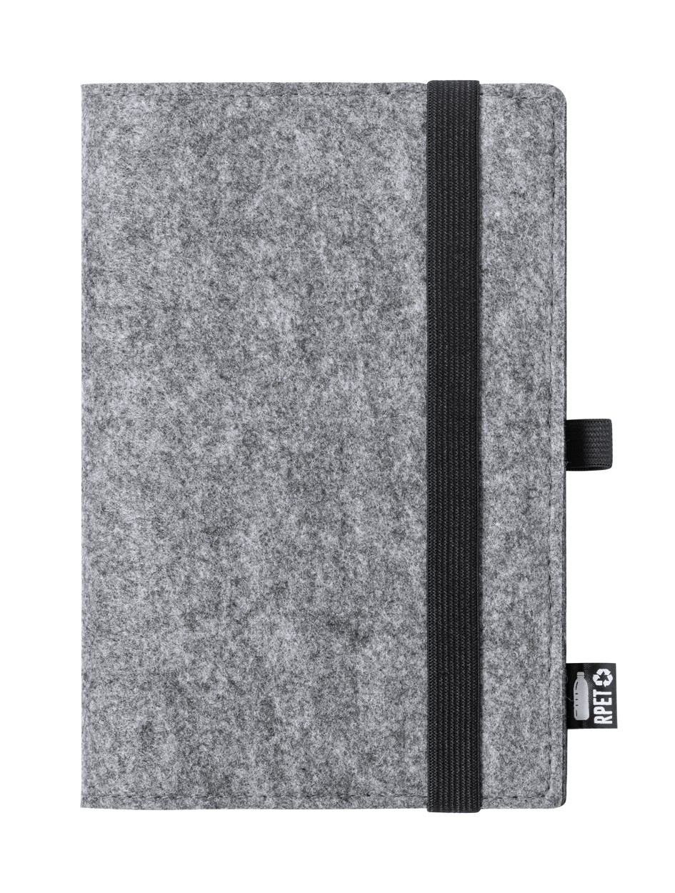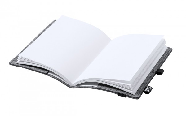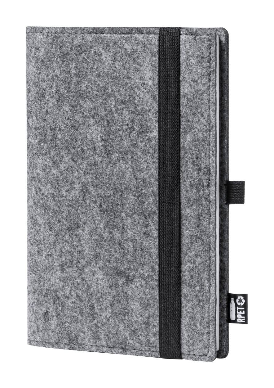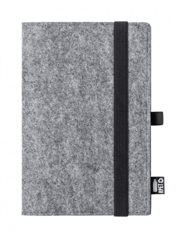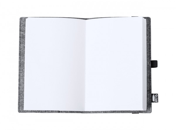 Notebook with RPET felt cover, rubber strap and distinctive RPET label. 100 plain sheets, A5 size.