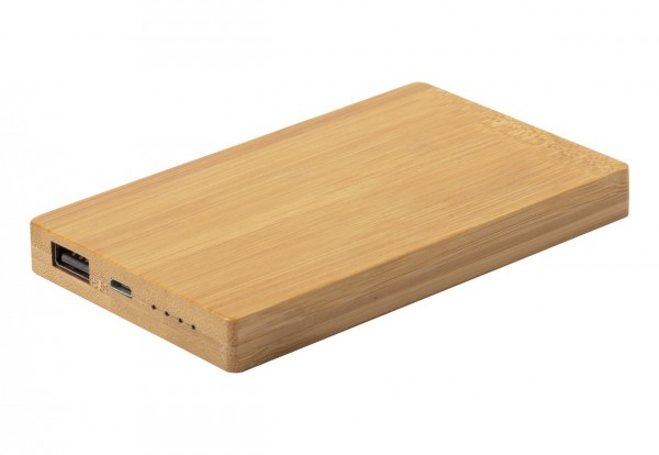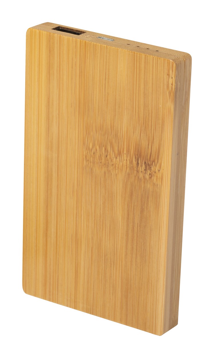 Power bank din bambus cu o baterie de 5000 mAh. Cablu încărcător micro USB inclus.