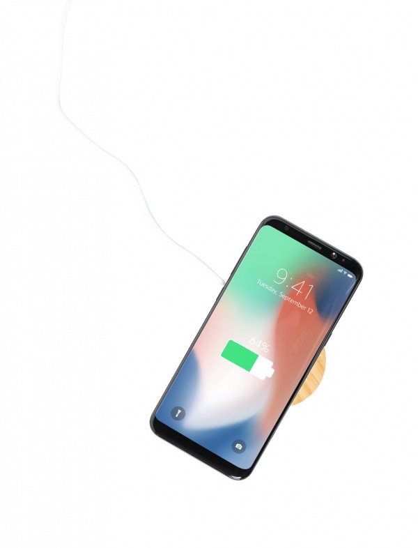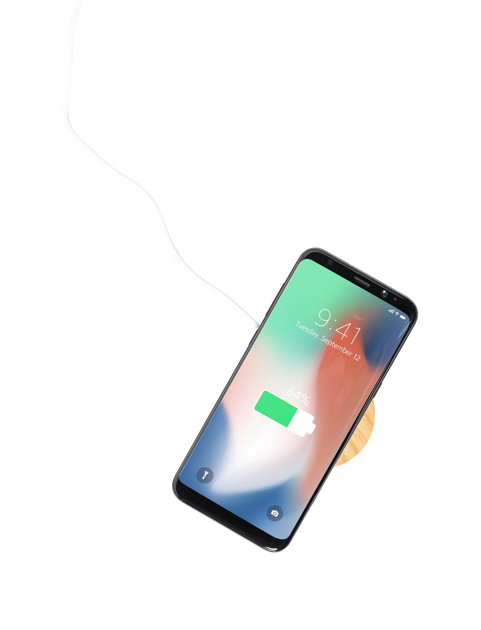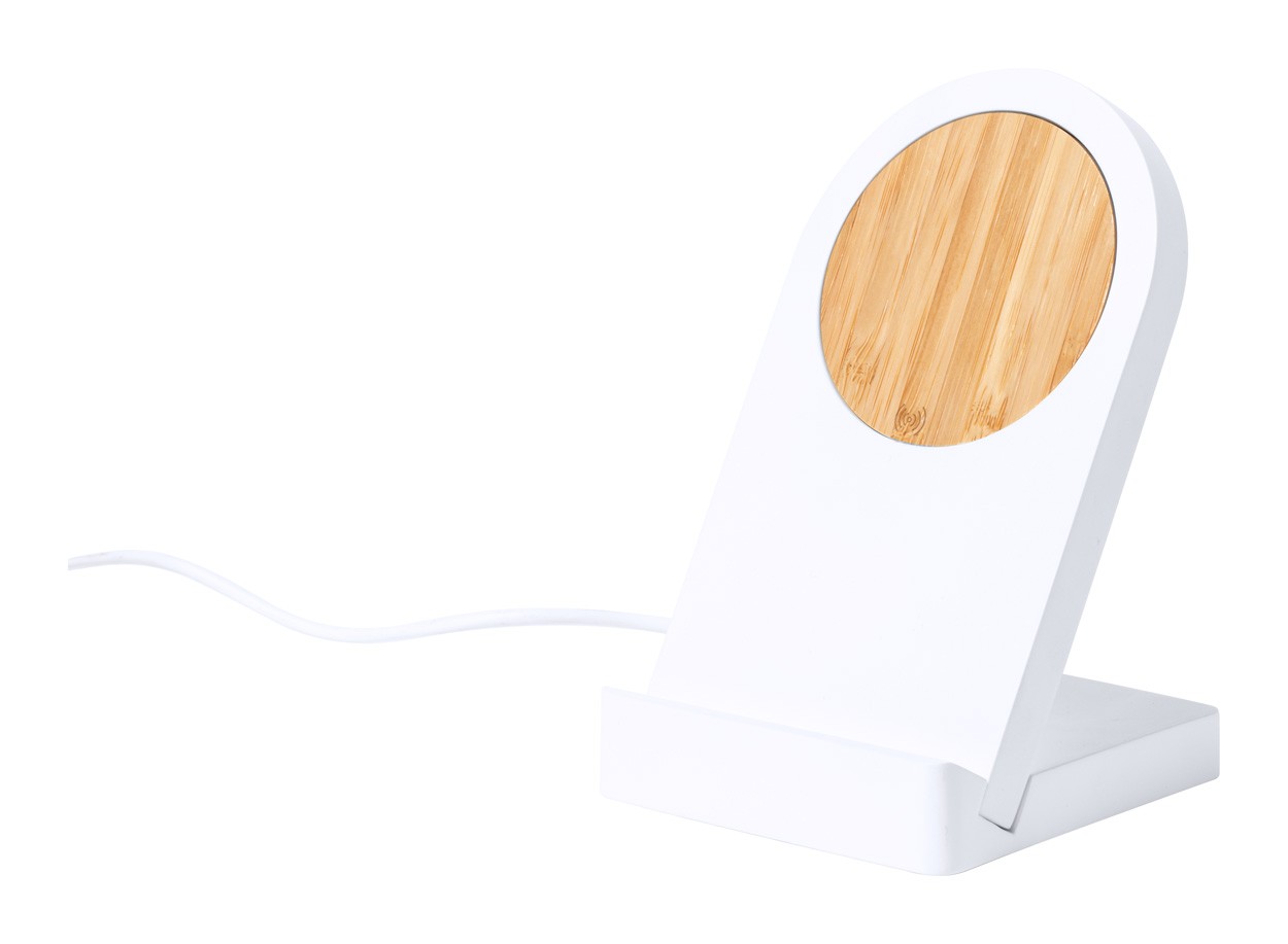 Suport mobil de birou, din plastic PLA cu încărcător rapid fără fir, magnetic (10W) încorporat în carcasă din bambus. Include inel metalic autoadeziv pentru a utiliza funcția magnetică pe orice dispozitiv încărcat fără fir. Inclusiv cablu de încărcare USB