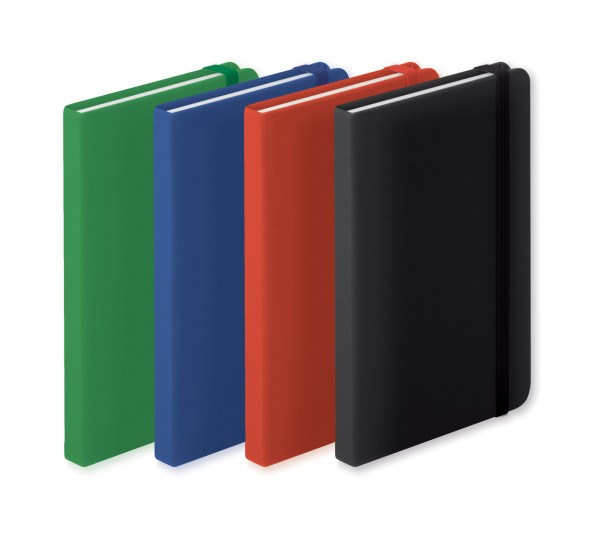 Carnețel cu elastic, copertă din înlocuitor piele, 100 file dictando, cu semn de carte. Dimensiune A6.