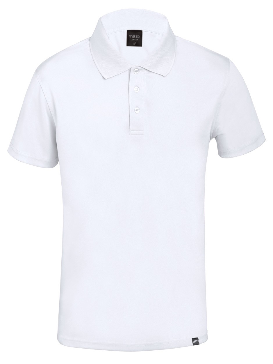 Tricou polo, 100% poliester RPET, respirabil, cu trei nasturi asortati la gat. 180 g/m². Cu etichetă distinctivă RPET.