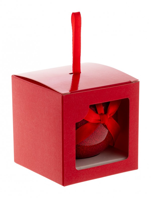 Ornament de Crăciun cu sclipici, din spumă PU, cu agățătoare panglică. Diametru bile: 75 mm. În cutie de cadou din hârtie asortată.