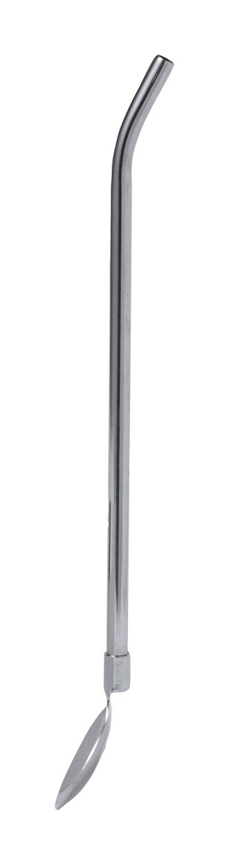 Stainless steel drink stirrer with spoon and integrated straw.