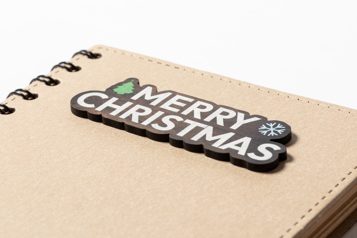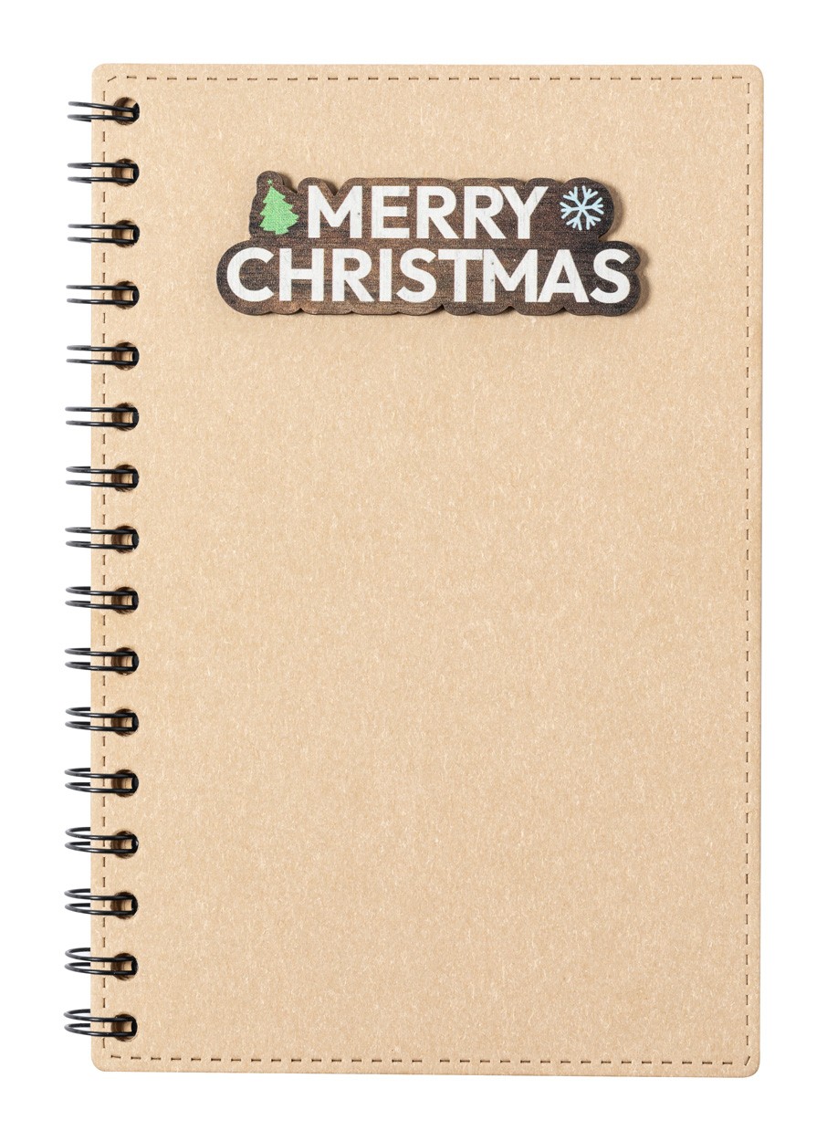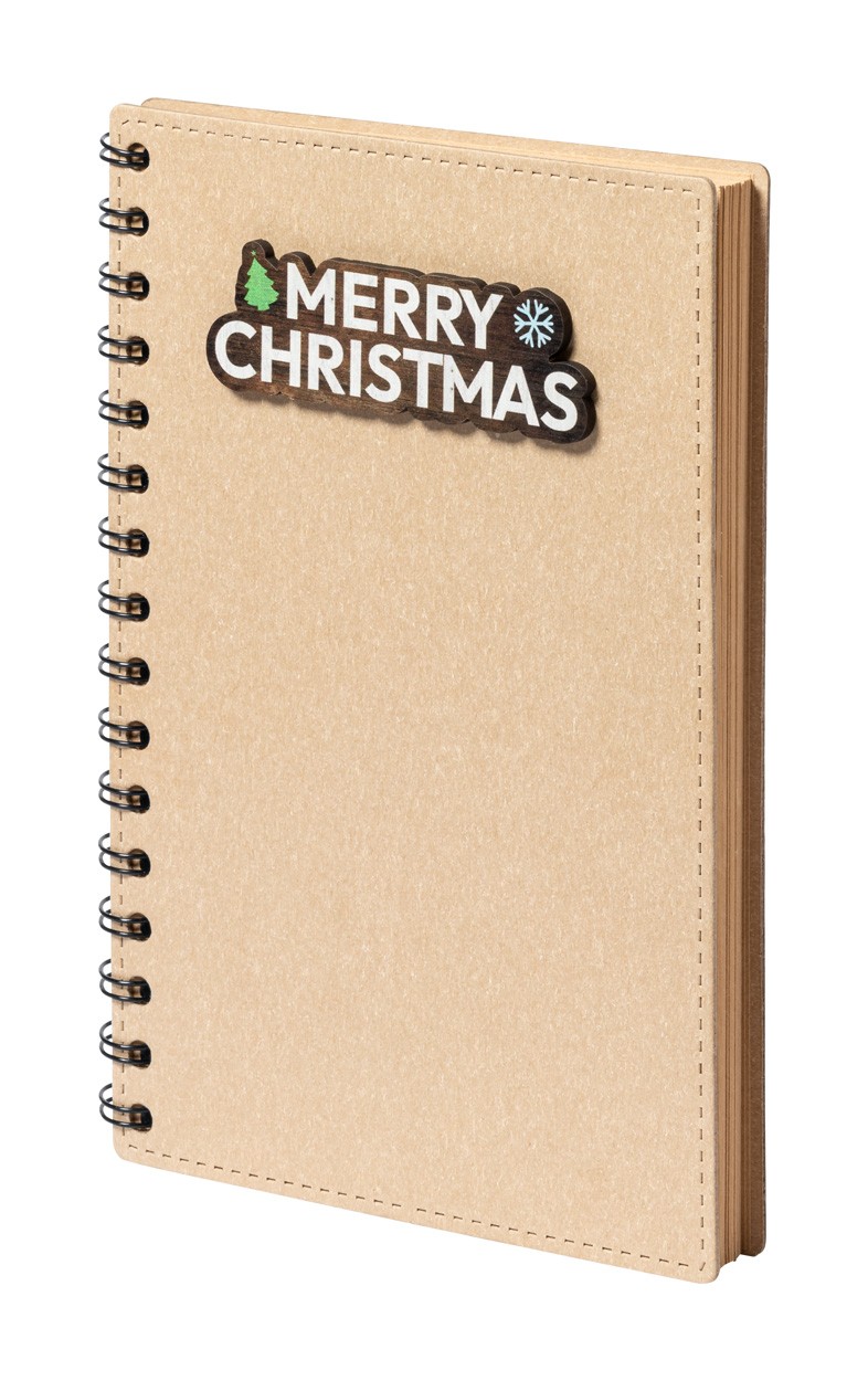 Caiet cu spirală, acoperit cu carton reciclat, cu design de Crăciun și 80 de file dictando, din hârtie reciclată.