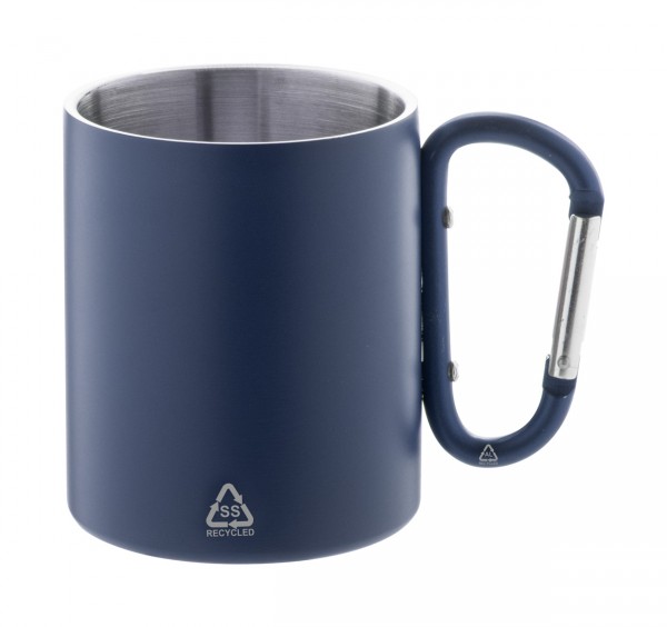 Cană termică din oțel inoxidabil reciclat, cu perete dublu, cu mâner pentru carabină, din aluminiu reciclat, de culoare asortată. 300 ml. În cutie de hârtie kraft.