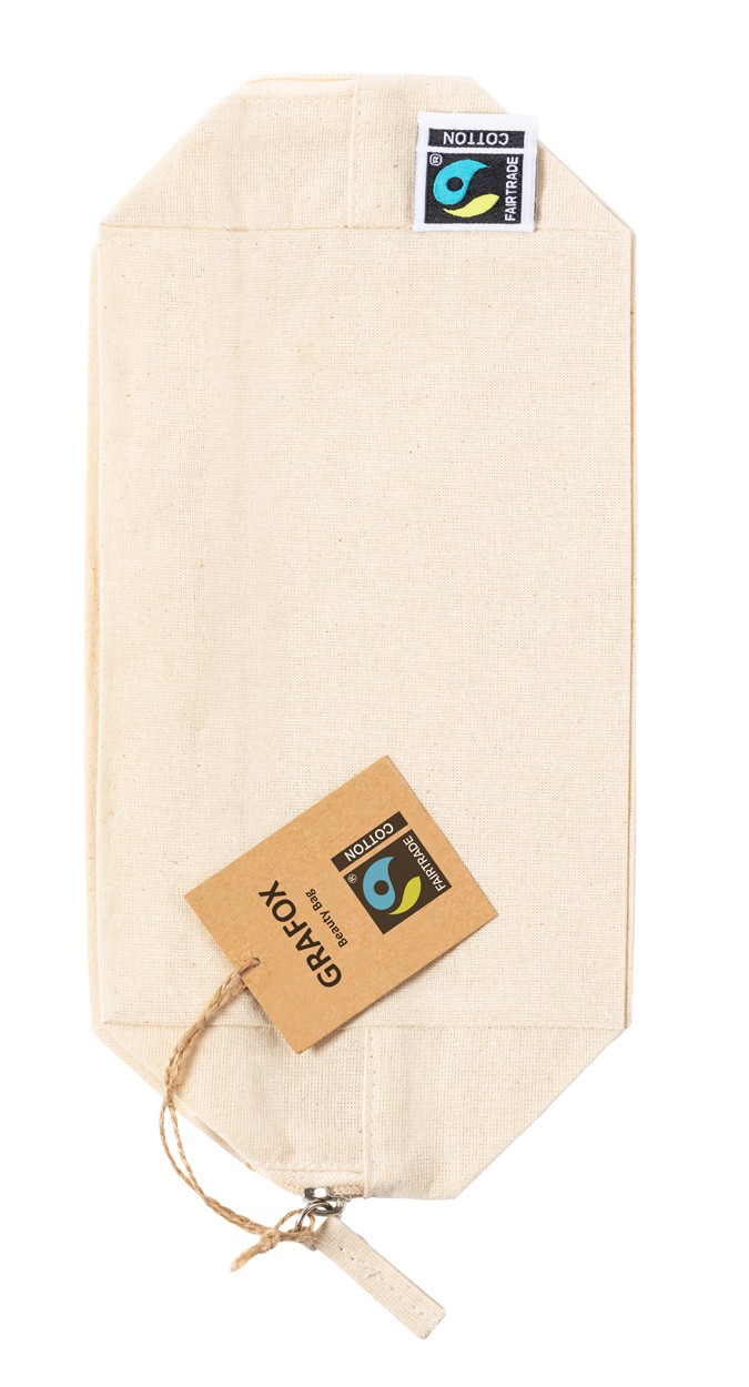 Geantă pentru cosmetice, din bumbac, cu fermoar, cu etichetă distinctă Fairtrade. 100% bumbac Fairtrade, 180 g/m².
