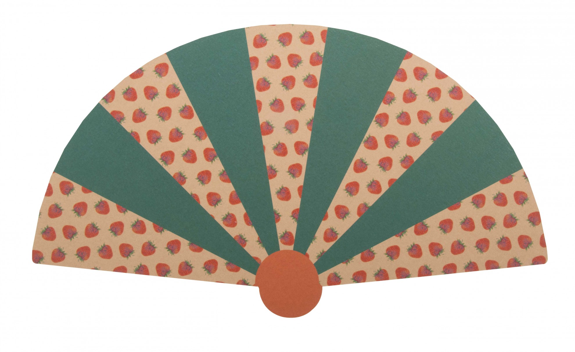 Evantai din hârtie kraft, personalizat cu grafică plină de culoare. Prețul include imprimarea digitală pe ambele fețe. MOQ: 100 buc.