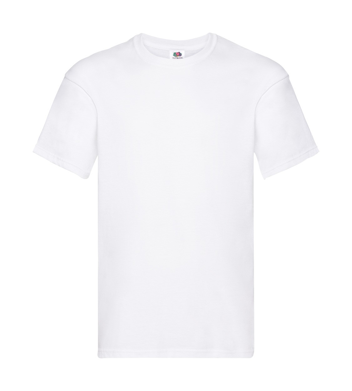 Tricou pentru adulți, cu gât rotund, de culoare albă. 100% bumbac, 140 g/m². Produs marca Fruit of the Loom.