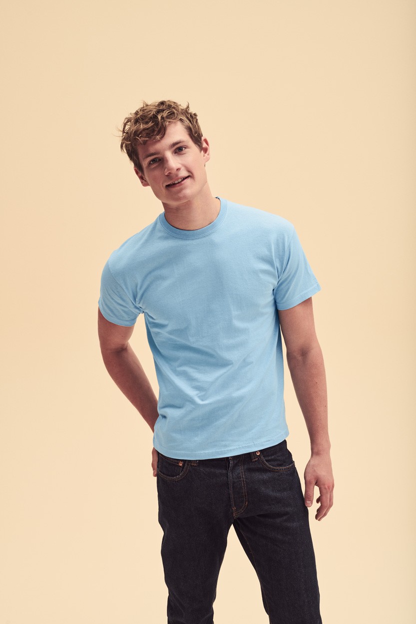 Tricou pentru adulți, cu gât rotund, color. 100% bumbac, 145 g/m². Produs marca Fruit of the Loom.