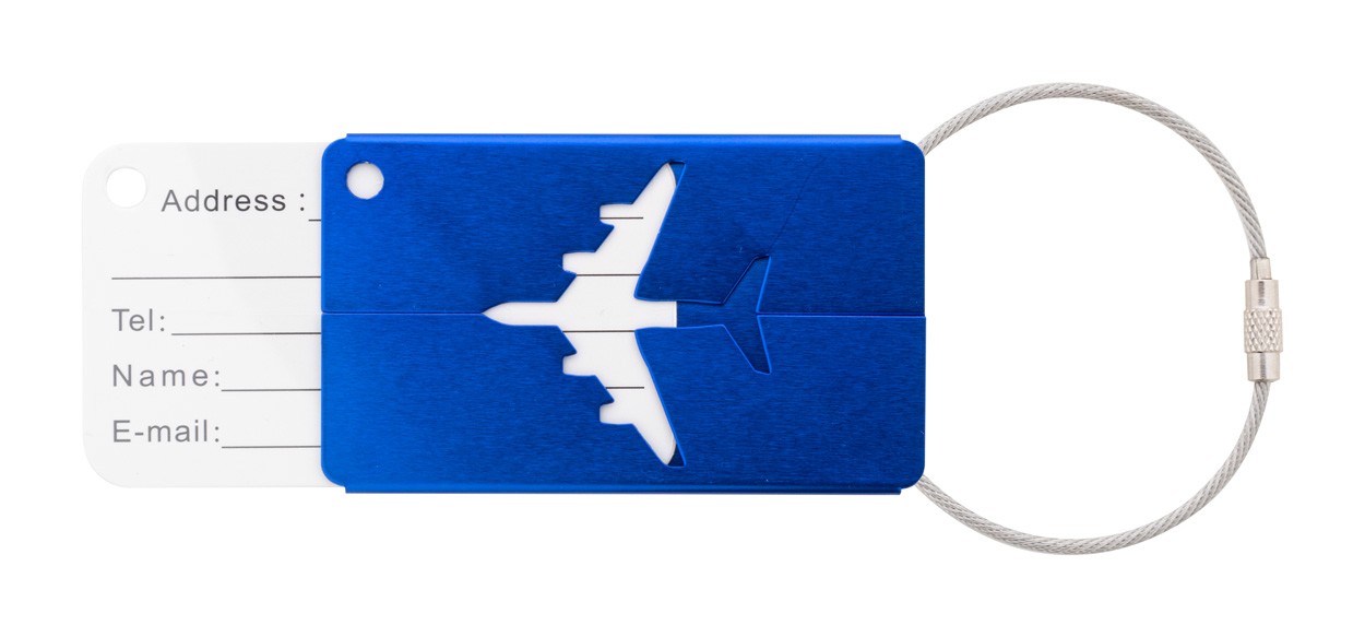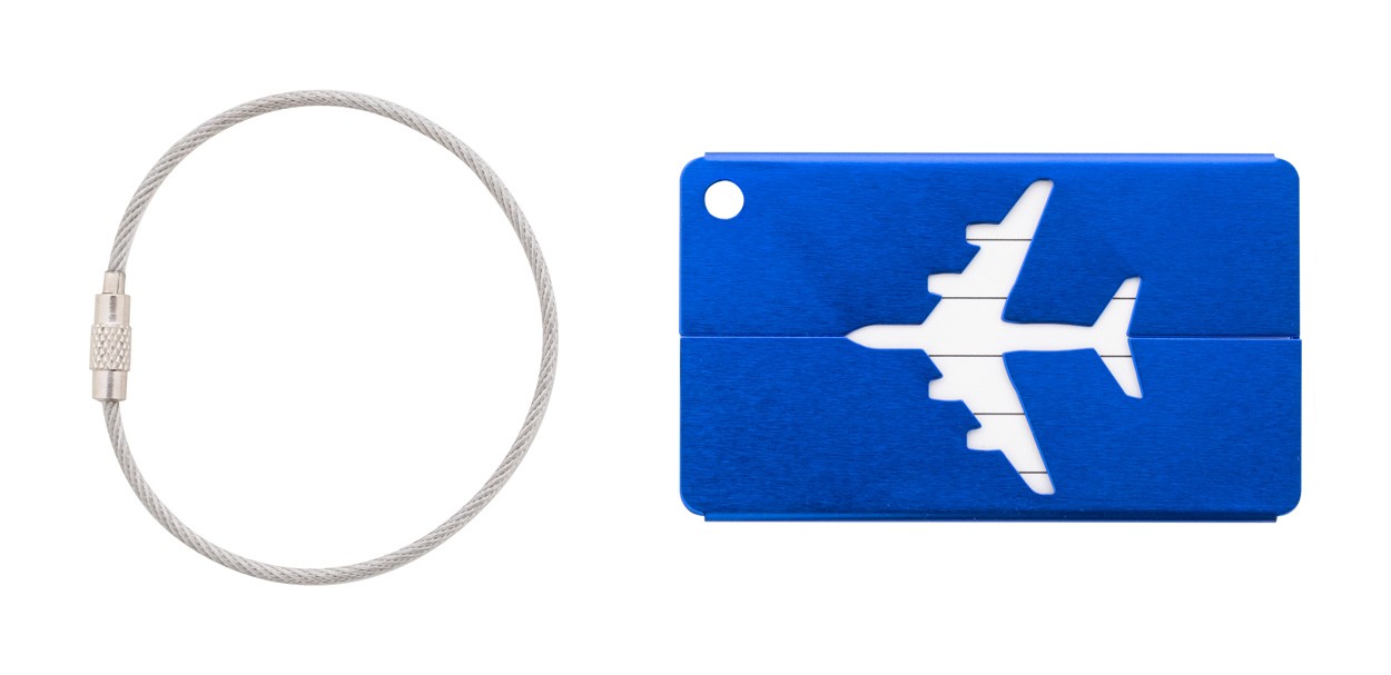 Etichetă de bagaj, din aluminiu, cu design de avion și șnur metalic