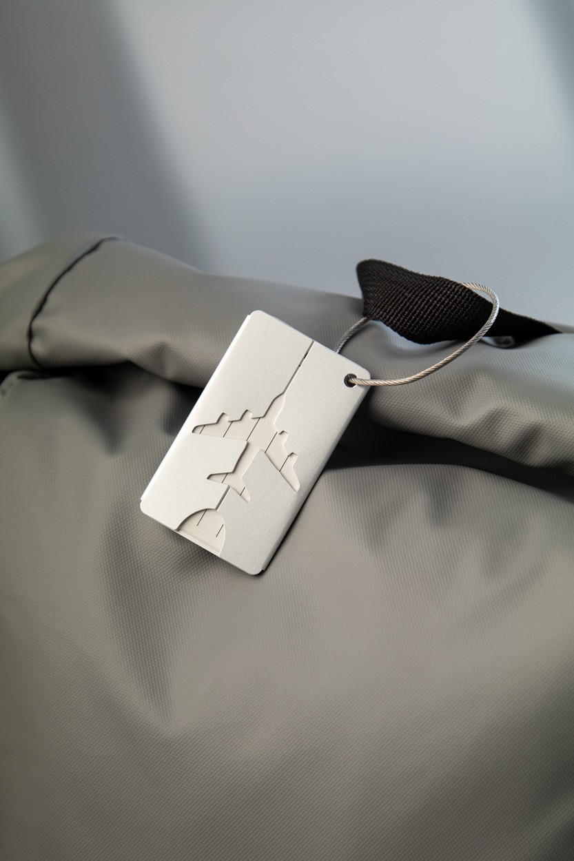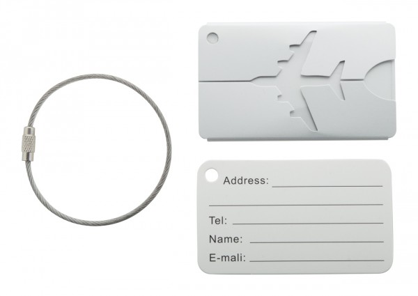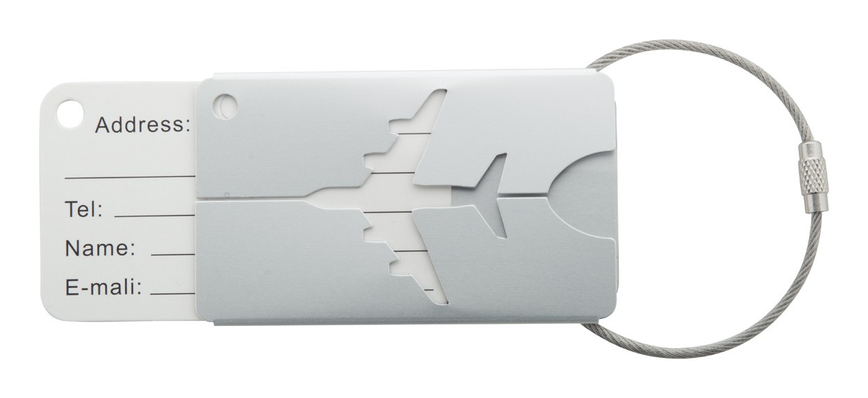 Etichetă de bagaj, din aluminiu, cu design de avion și șnur metalic