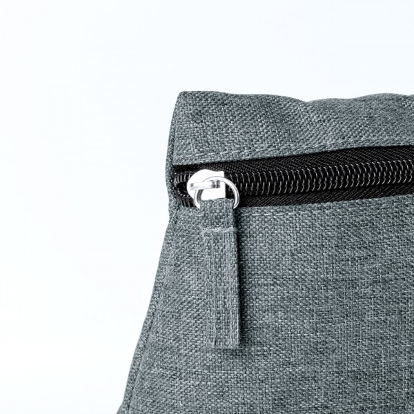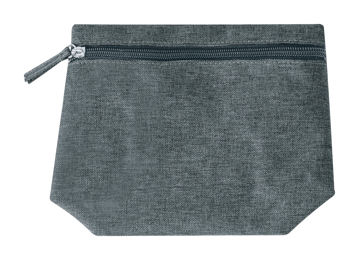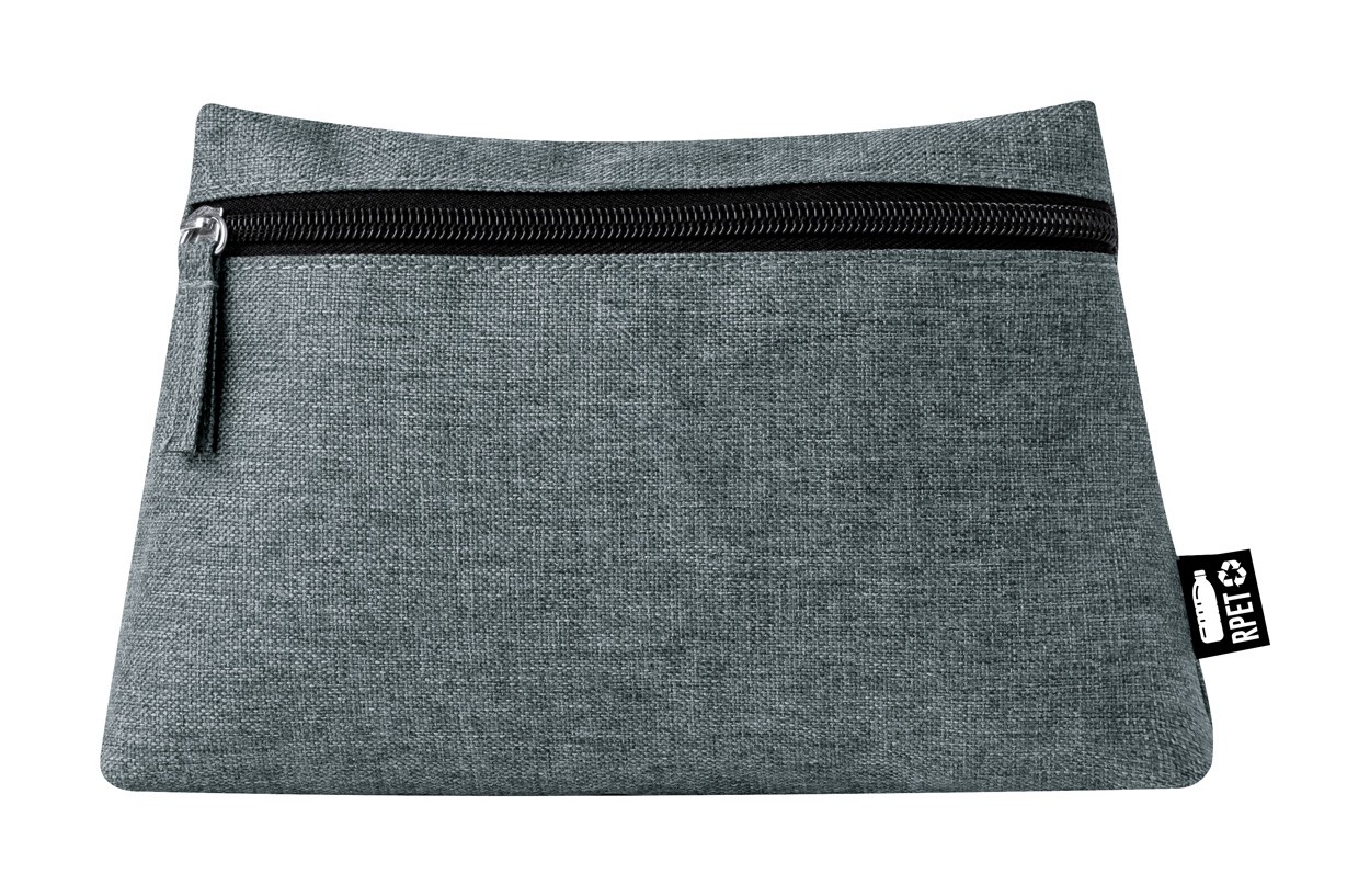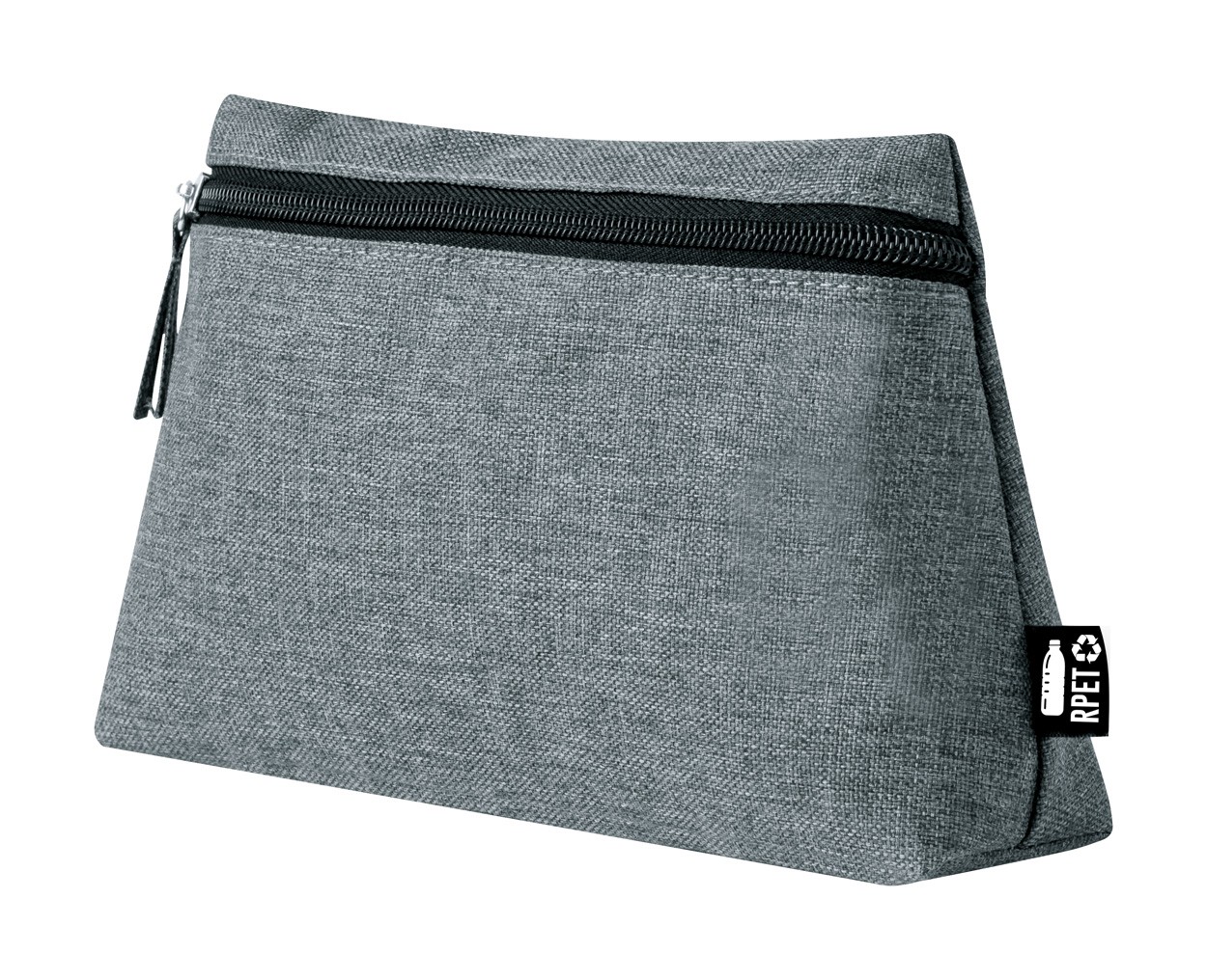 Geantă cosmetică RPET, cu fermoar. Poliester 600D RPET, cu etichetă RPET distinctă.