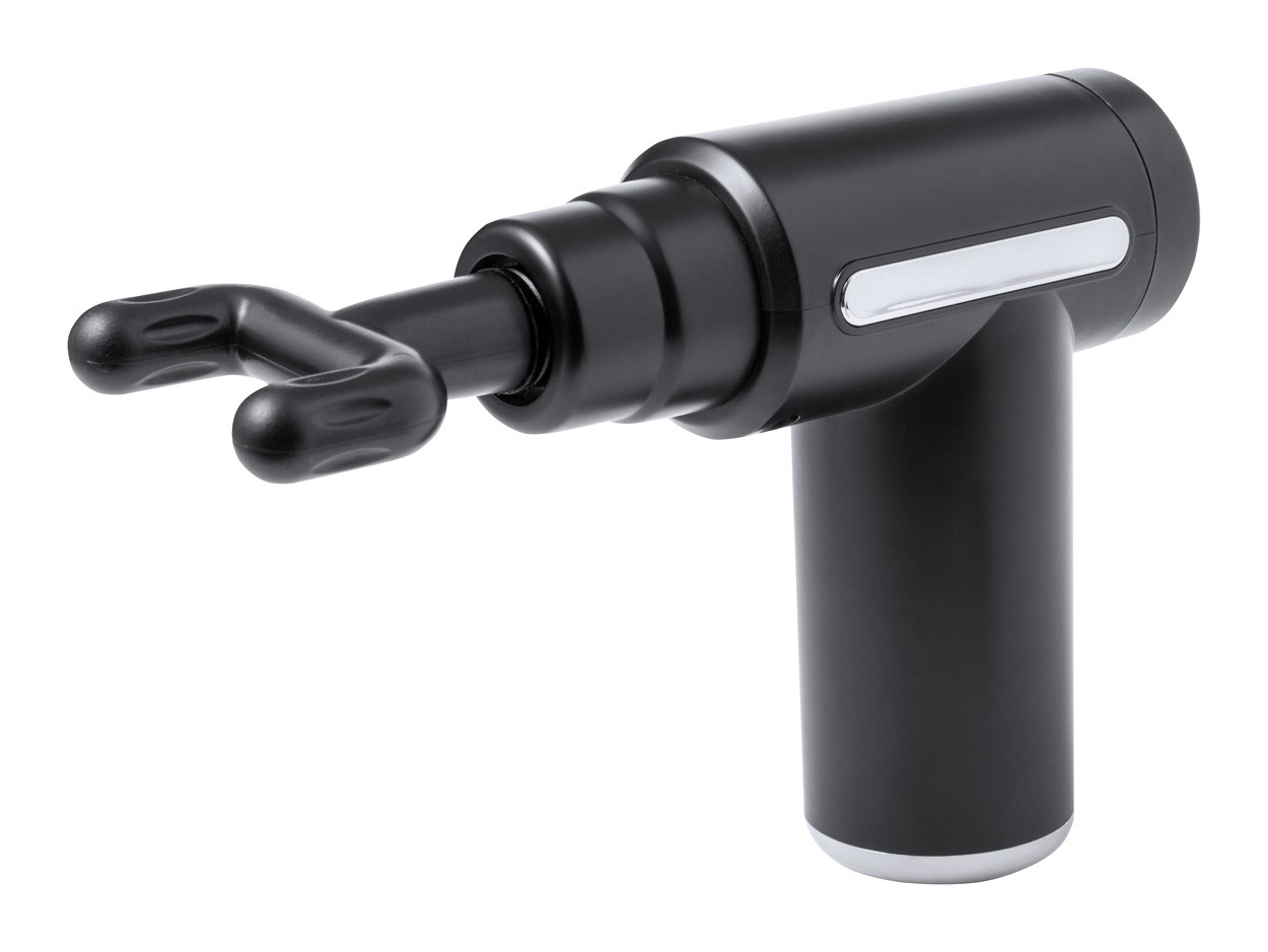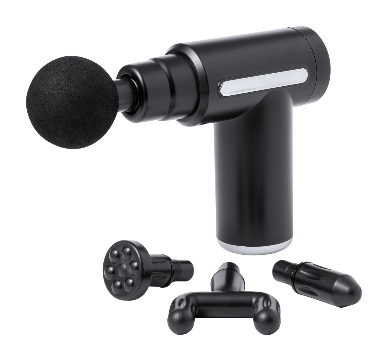 Pistol de masaj, din plastic ABS, cu 6 moduri și 4 capete de masaj. Cu baterie reîncărcabilă încorporată (1200 mAh).