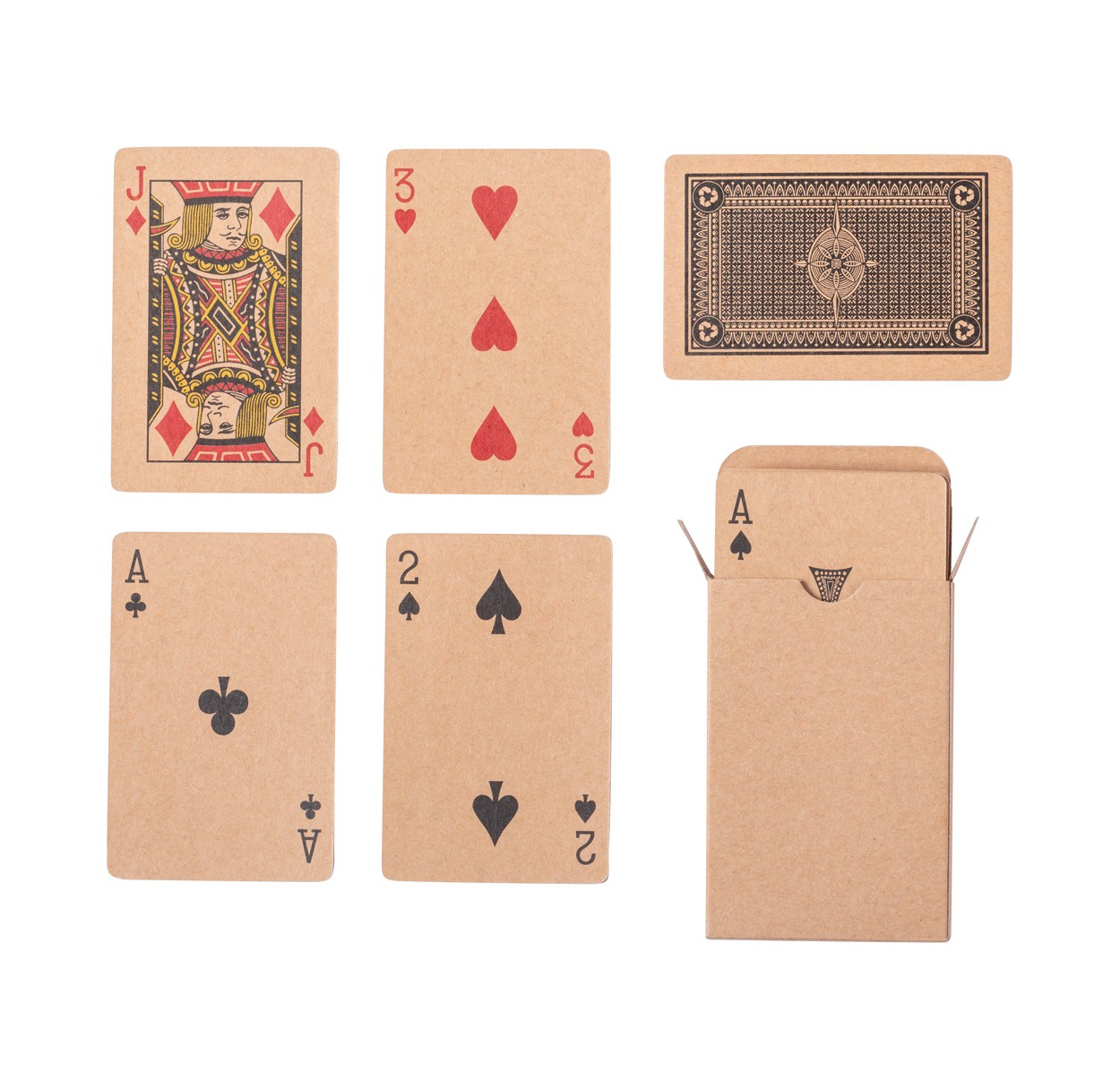 Cărți de joc clasice din hârtie reciclată în cutie din hârtie kraft. Un pachet standard cu 54 de cărți.