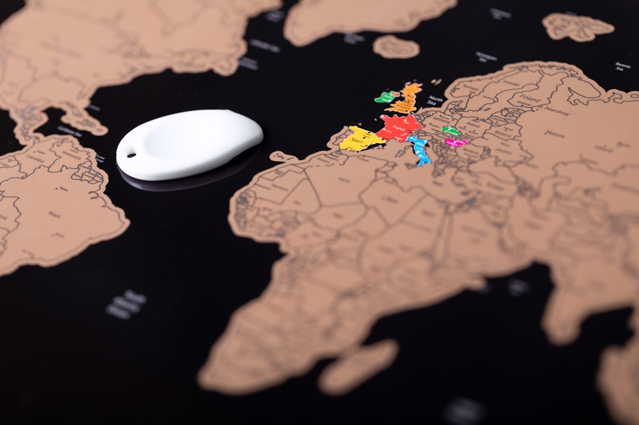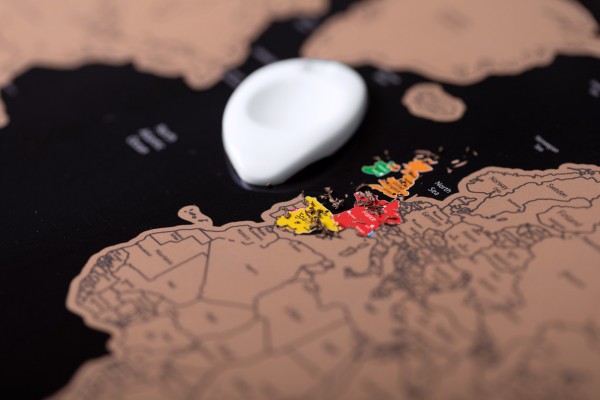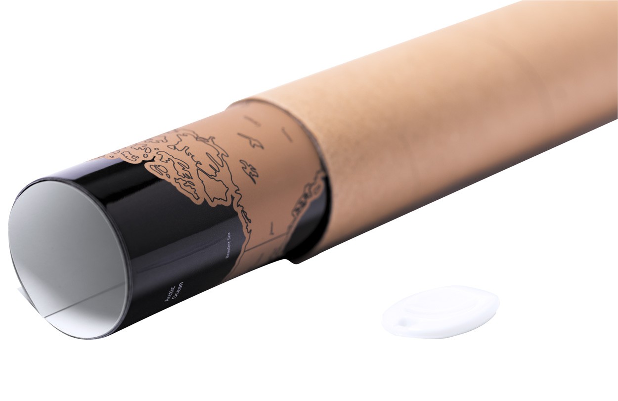 Harta lumii din hârtie laminată, 43 x 28,5 cm. În cutie tub din carton.