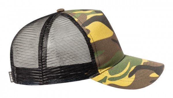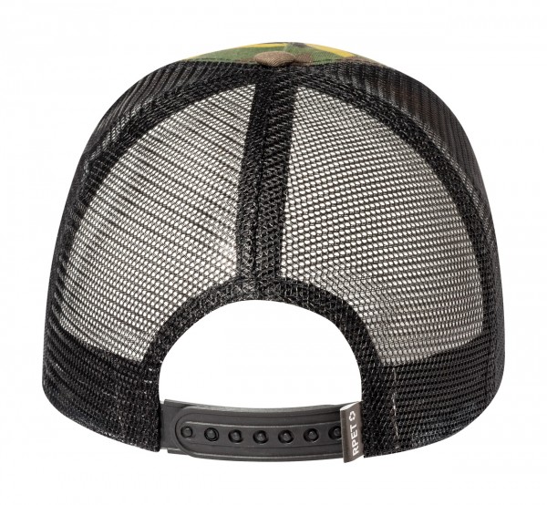 RPET polyester baseball cap with 5 panels and plastic closure.