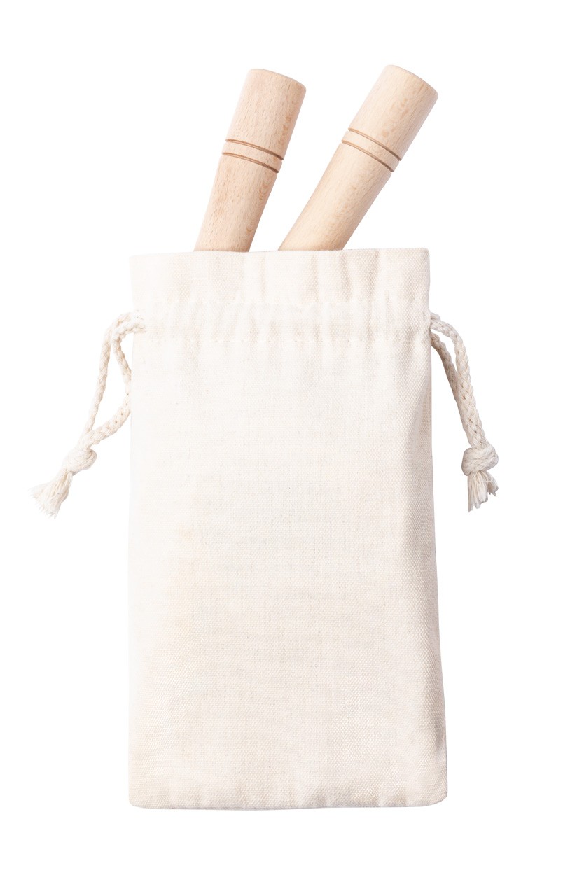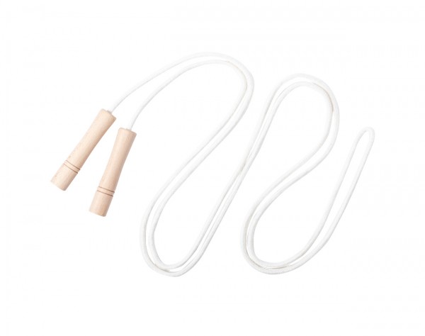 Coardă de sărit, din bumbac, cu mânere din lemn. În husă de bumbac cu cordon.