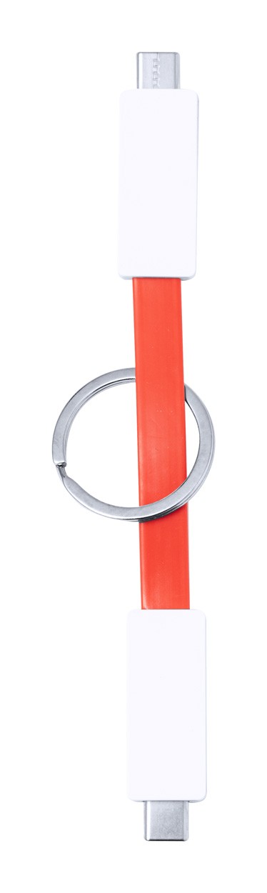 USB charger cable with USB-C connector and metal keyring. With USB-C input.