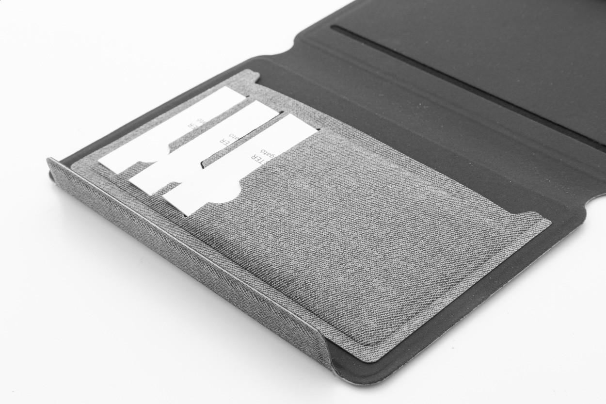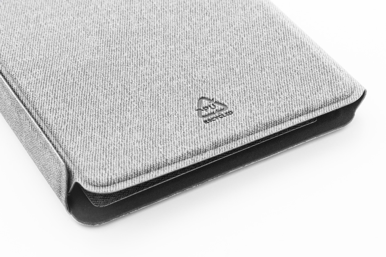 Husă pentru pașaport, din piele PU reciclată, cu buzunare interioare pentru carduri și închidere magnetică.