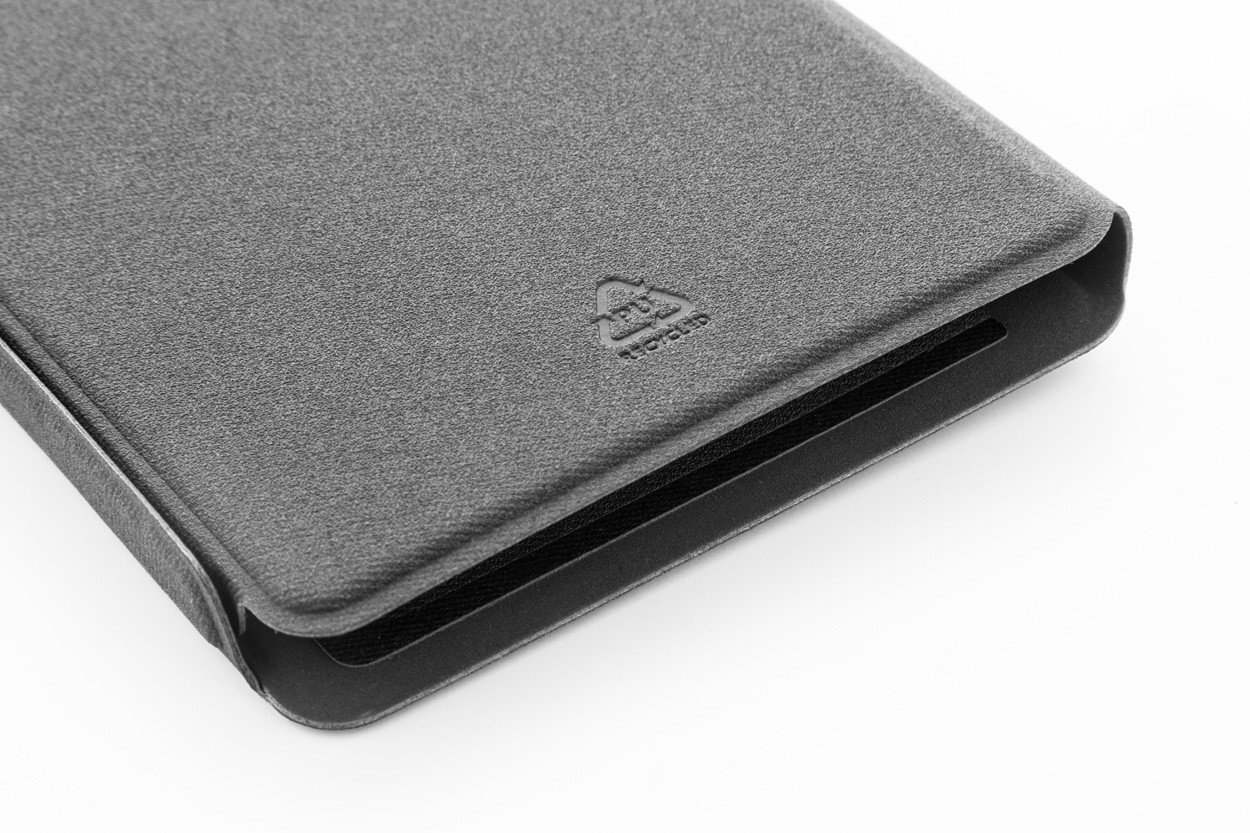 Husă pentru pașaport, din piele PU reciclată, cu buzunare interioare pentru carduri și închidere magnetică.